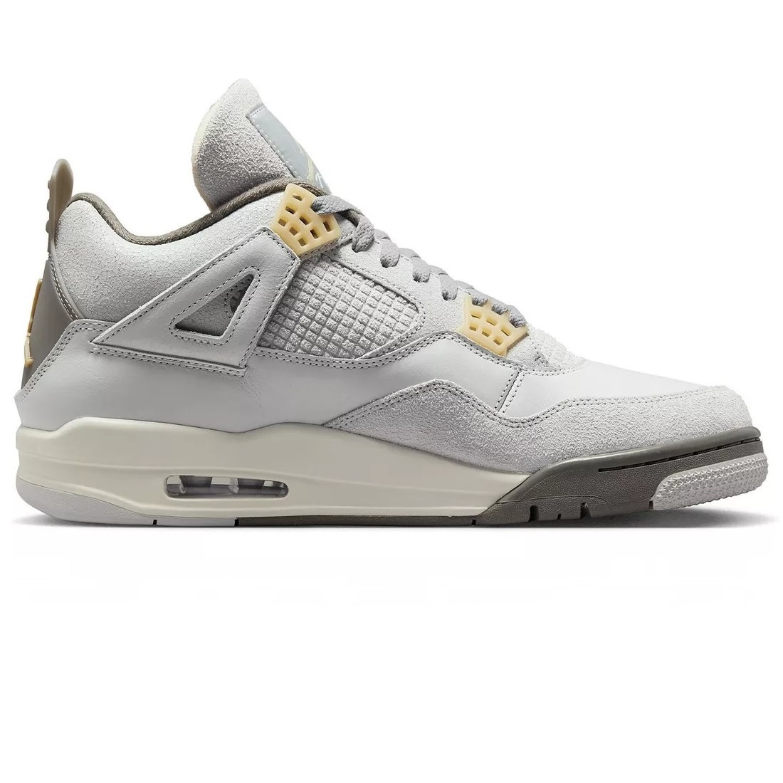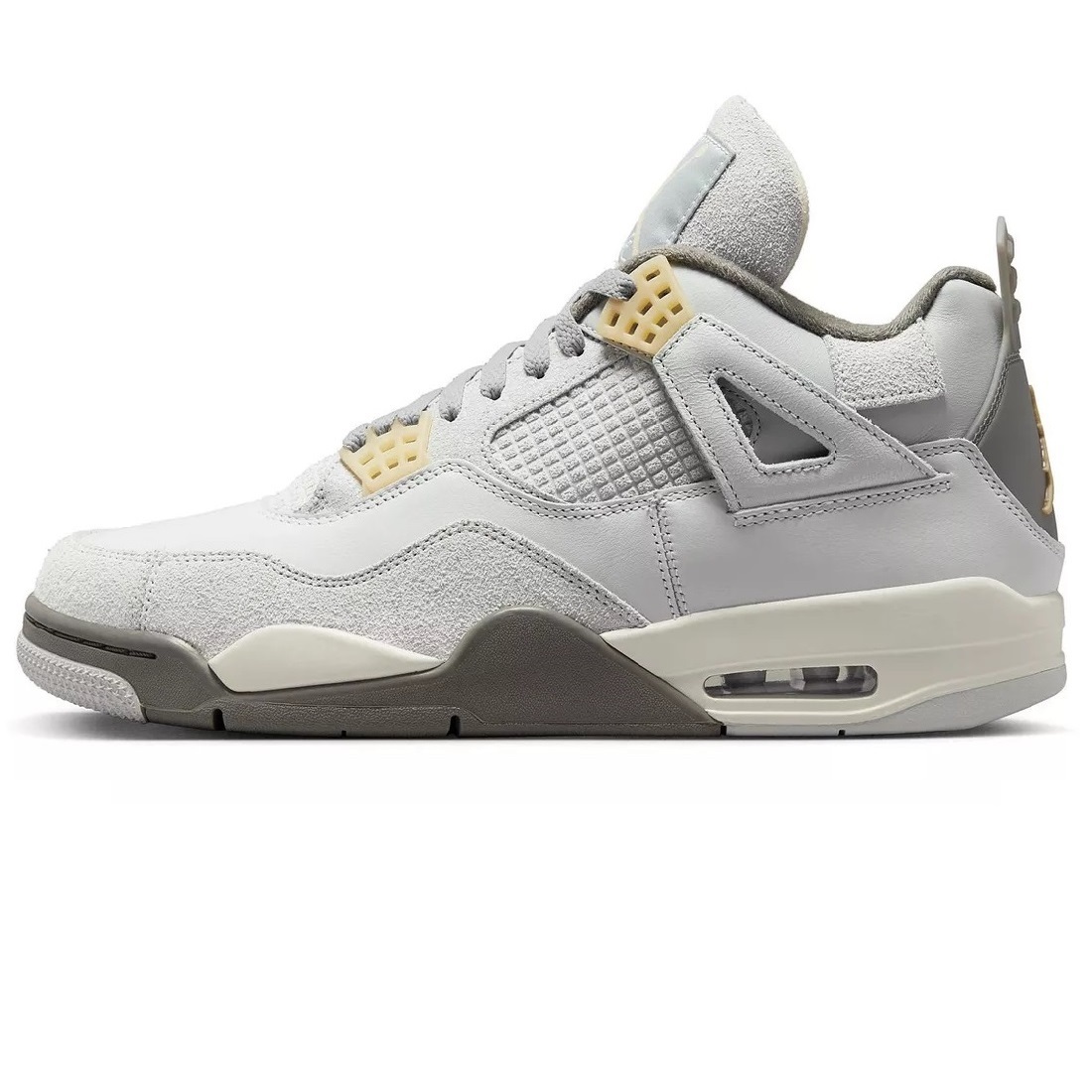 ■メーカー:NIKE ■モデル(品番):AIR JORDAN 4 RETRO SE (DV3742-021) ■素材:甲=天然皮革+合成樹脂+合成繊維 | 底=ゴム底 ■生産国:中国 ■カラー:薄灰/灰/生成り ■商品状態:新品箱無し ■サイズ:JPN 26.0cm | US 8 ◆サイズ構造について◆ 同社のスニーカーとしては標準的な構造だと思います。 同社のサイズ構造に認識が無い方はご入札はしないで下さい。 サイズ感はあくまで出品者の感覚です。サイズ感に関しましては個人差が御座います。 ■特徴 AIR JORDAN 4の2023年復刻版。 異素材を組み合わせて再構築したCraft Collection。 クラシックなプラスチックのウェビングの代わりに格子のエンボス加工を施したレザー採用。 アッパーに使われた柔らかいスエードと追加のステッチラインがCRAFT感を演出。 プラパーツにはビンテージ感を演出したバニラカラーを採用。 ミッドソールはセイルカラーでレトロな空気感をプラス。 軽量のクッショニングと安定性に優れた立体的なミッドソールを搭載。 アウトソールのヘリンボーンパターンによりトラクションが向上。 ■備考 ◎国内正規代理店の商品です。 ◎基本的に画像に有るものが全てとお考え下さい。 ◎箱無し保管のためソールに白い部分が有るモデルは少し汚れている場合が御座います。 ◎些細な汚れも気になるような方は入札はしないで下さい。 ◎箱無しのため箱無し梱包発送となります。輸送過程で少し傷が付く可能性が御座いますがご了承下さい。 ◎可能な限り実色を再現しておりますがディスプレイ機器や観覧環境で色合いが異なる場合が御座います。 ◎カラーが気になる方は品番をネット検索して他の商品画像の色合いも確認してみて下さい。 ◎製造過程で生じた・縫製のズレ・些細な汚れ・些細な傷・少量の付着接着剤が有る場合が御座います。 ◎天然皮革部分は素材特性から左右で質感が異なる場合が御座います。