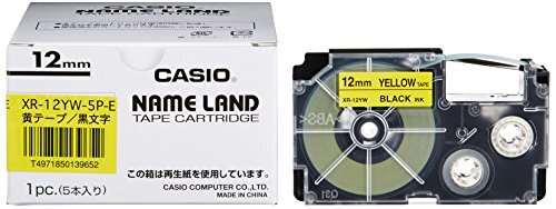 ◆ネームランド用リボン 黄/黒文字 5本入◆スタンダードテープ / ■ 仕 様 ■テープ長:8mスタンダードテープ 黄/黒文字テープ幅:12mm / |