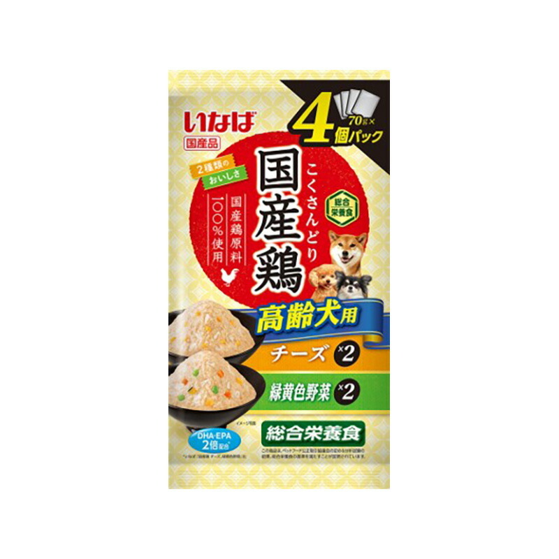 ・高齢犬の健康に配慮して、DHA・EPA含有精製魚油を2倍配合(*いなば「国産鶏 チーズ緑黄色野菜」比)