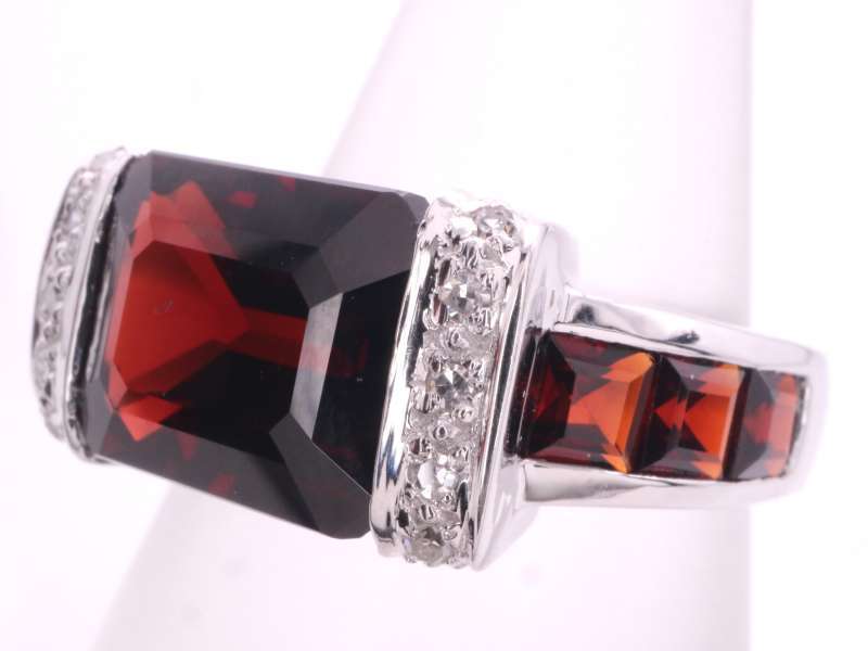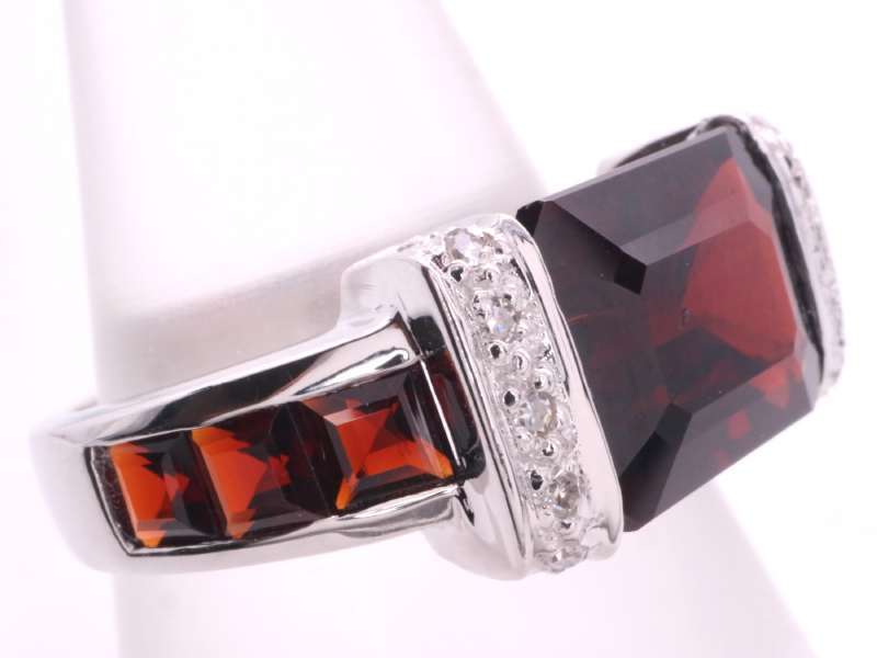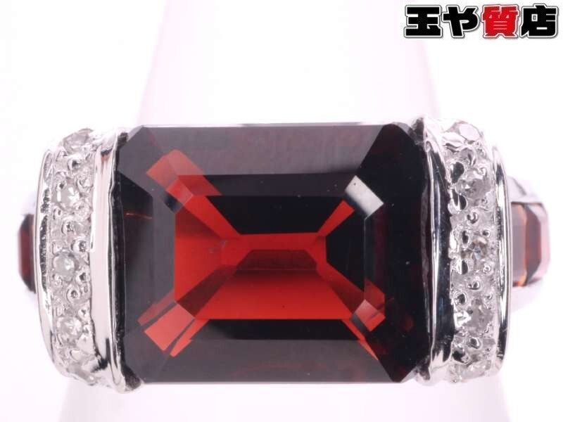 ガーネット5.0ct ダイヤ0.10ct デザイン リング14号 K18WG ホワイトゴールド