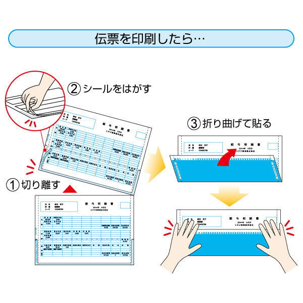 ○売れ筋の給与明細GB1172の粘着テープ付密封式。封筒に入れる手間がいりません。