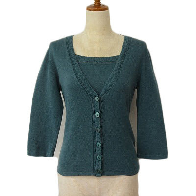 メイクレット MAKELET アンサンブル ニット コットン レーヨン M 青 ブルー レディース