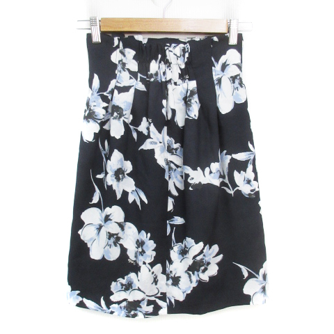 ノエラ Noela フレアスカート ひざ丈 花柄 マルチカラー 黒 白 ブラック ホワイト /FF9 レディース