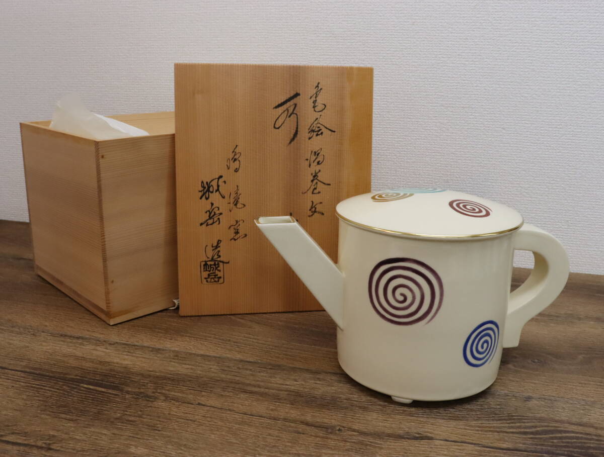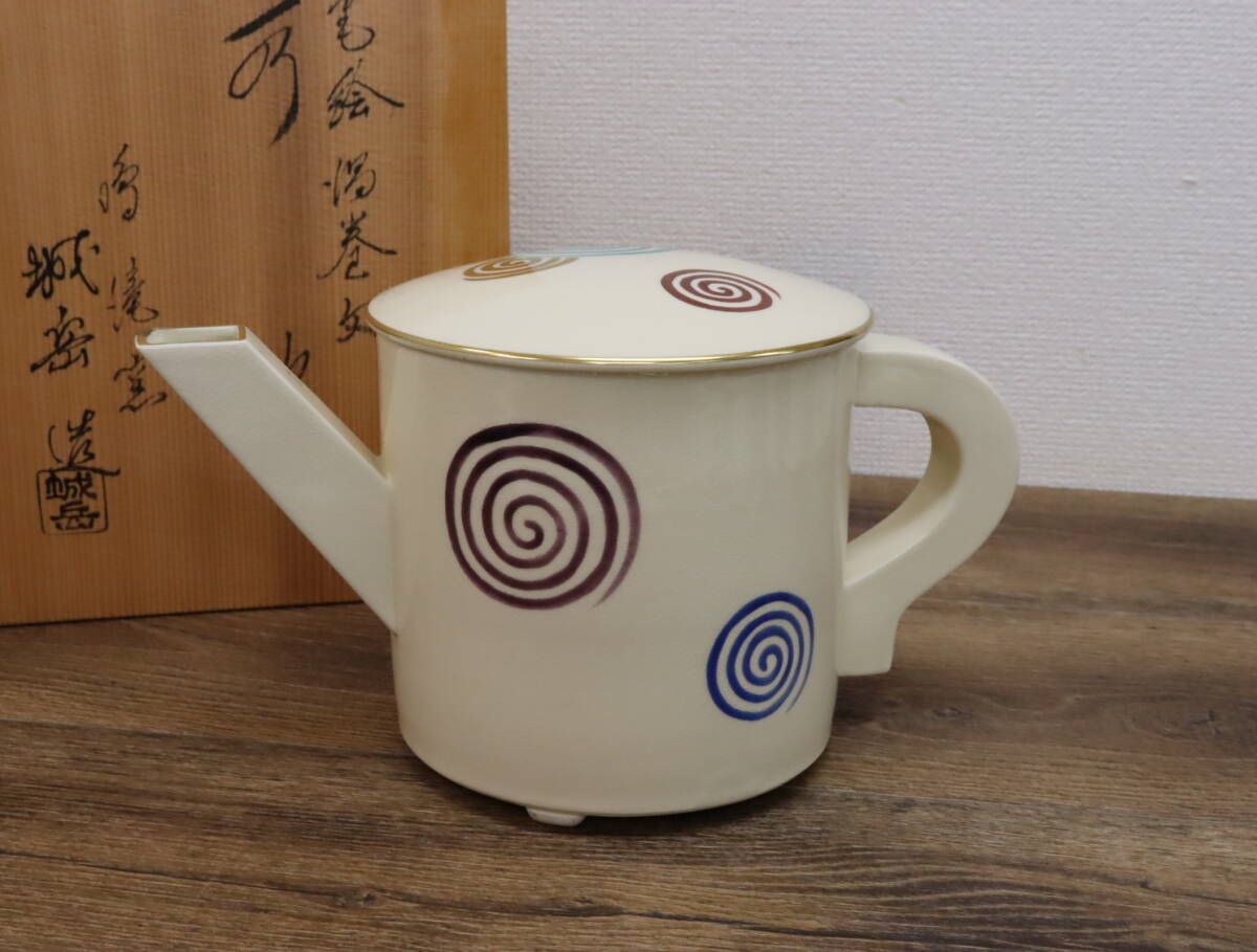 橋本城岳 造 水注 水指 色絵渦巻紋 鳴滝窯 茶道/茶道具 煎茶道具 工芸品 陶芸/陶器/陶磁器 焼き物/焼物 在銘/共箱付き J1382-ニ3 | |||