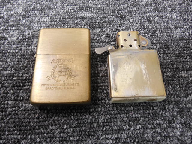Zippo・ライター・ビンテージ・SOLID BRASS・真鍮・ZiPPOロゴ・地球  /  ゴシックロゴ刻印 ・C  IX・1993年頃