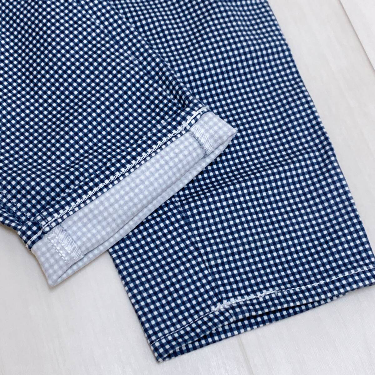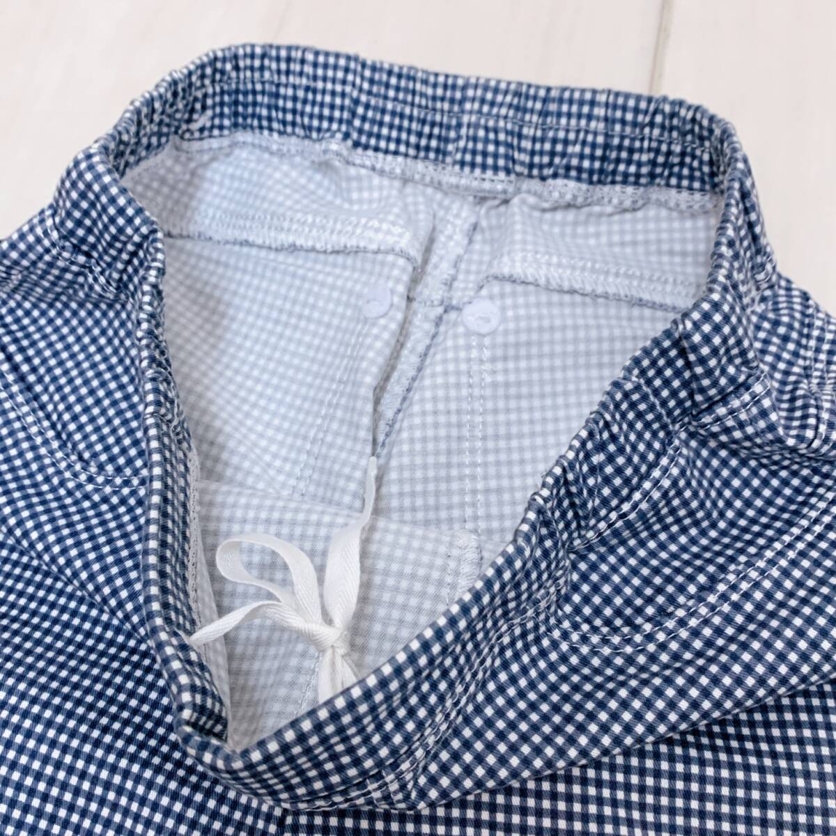 YH0882 UNIQLO ユニクロ レディース ギンガムチェック柄 カジュアルパンツ ボトムス 総柄 ネイビー Mサイズ ウェストゴム 万能 USED 古着
