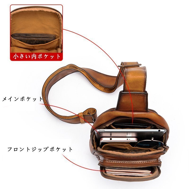 新入荷★レザー ボディバッグ メンズ 本革 レザー ワンショルダーバッグ 牛革 斜めがけ ブラウン iPad mini対応 カジュアル自転車鞄