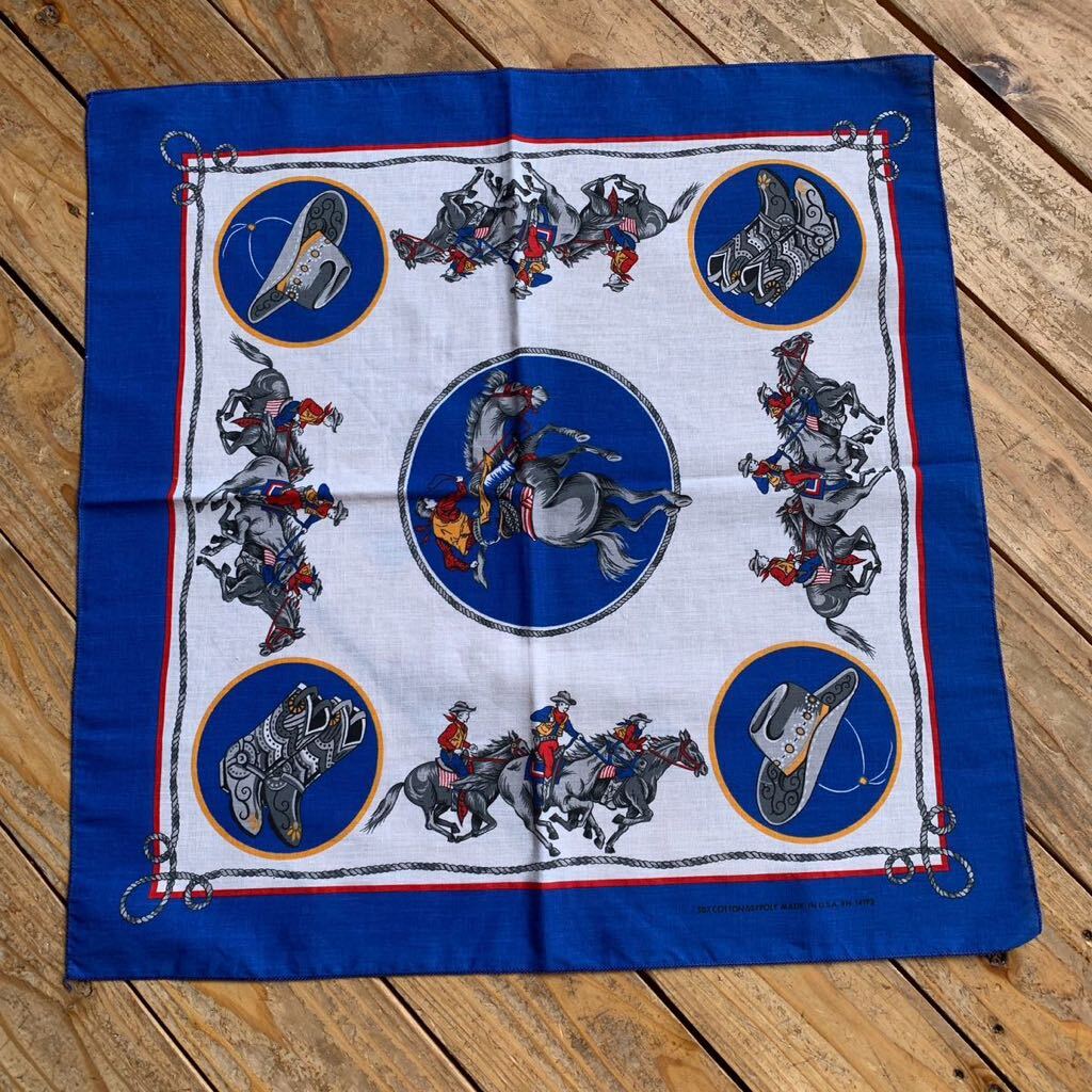 アメリカで購入したセカンドハンド(古着)の、 カウボーイ柄のバンダナです。