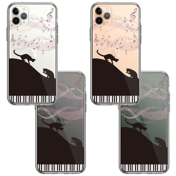 iPhone11pro ケース クリアピアノ シルエット猫 ブラック スマホケース 側面ソフト 背面ハード ハイブリッド