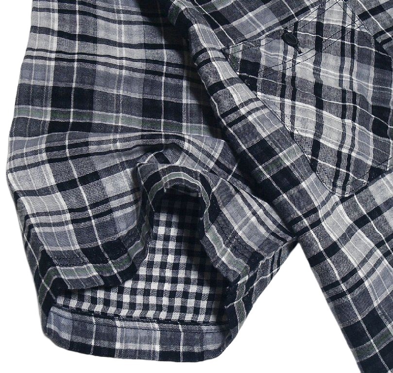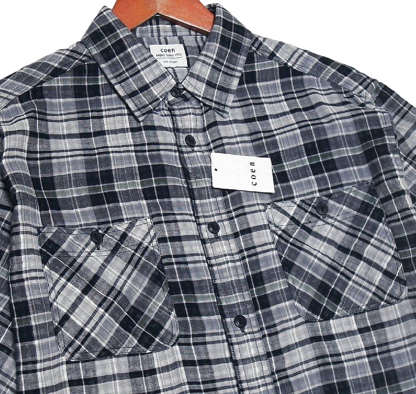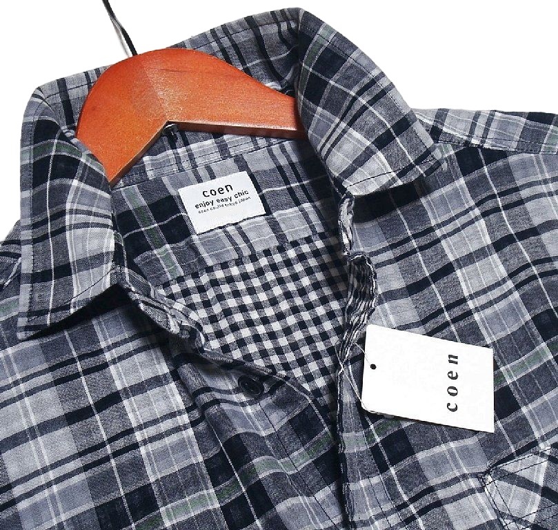 新品!! コーエン coen Wガーゼ チェック柄 半袖 シャツ ブラック (L) 送料安☆ユナイテッドアローズ メンズ ゆったり 綿100% 夏物 黒 ★