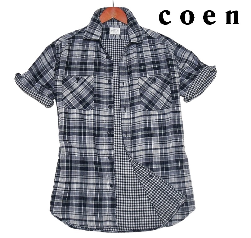 ◇coen (コーエン) Wガーゼチェック柄半袖シャツ◇