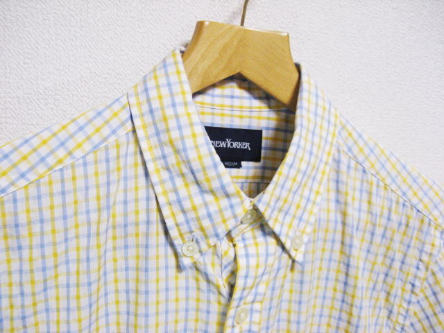 美品 NEWYORKER ニューヨーカー ボタンダウン チェック 半袖シャツ Mサイズ