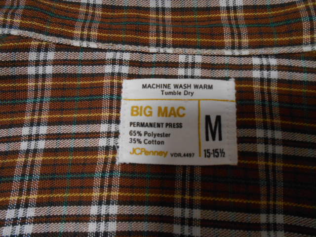 70~80年代!ビッグマック チェック柄 ウエスタンシャツ M ブラウン BIGMAC Jcpenney シャンブレー ダンガリー ネルシャツ