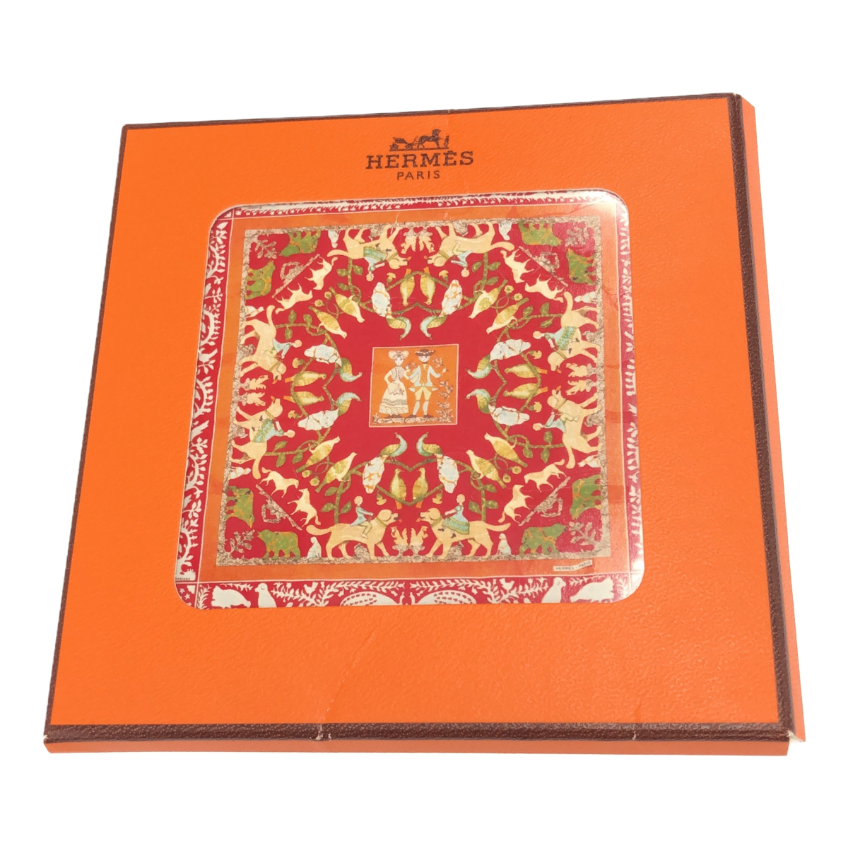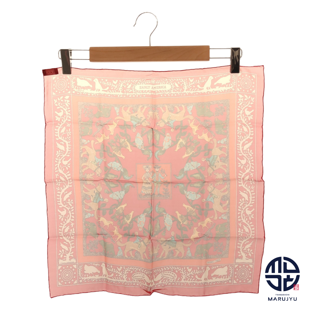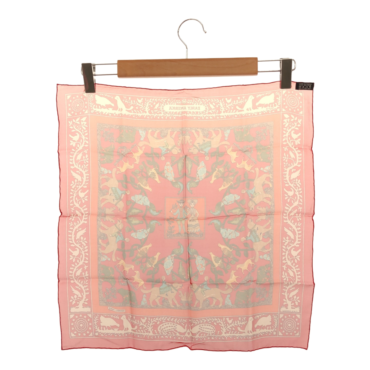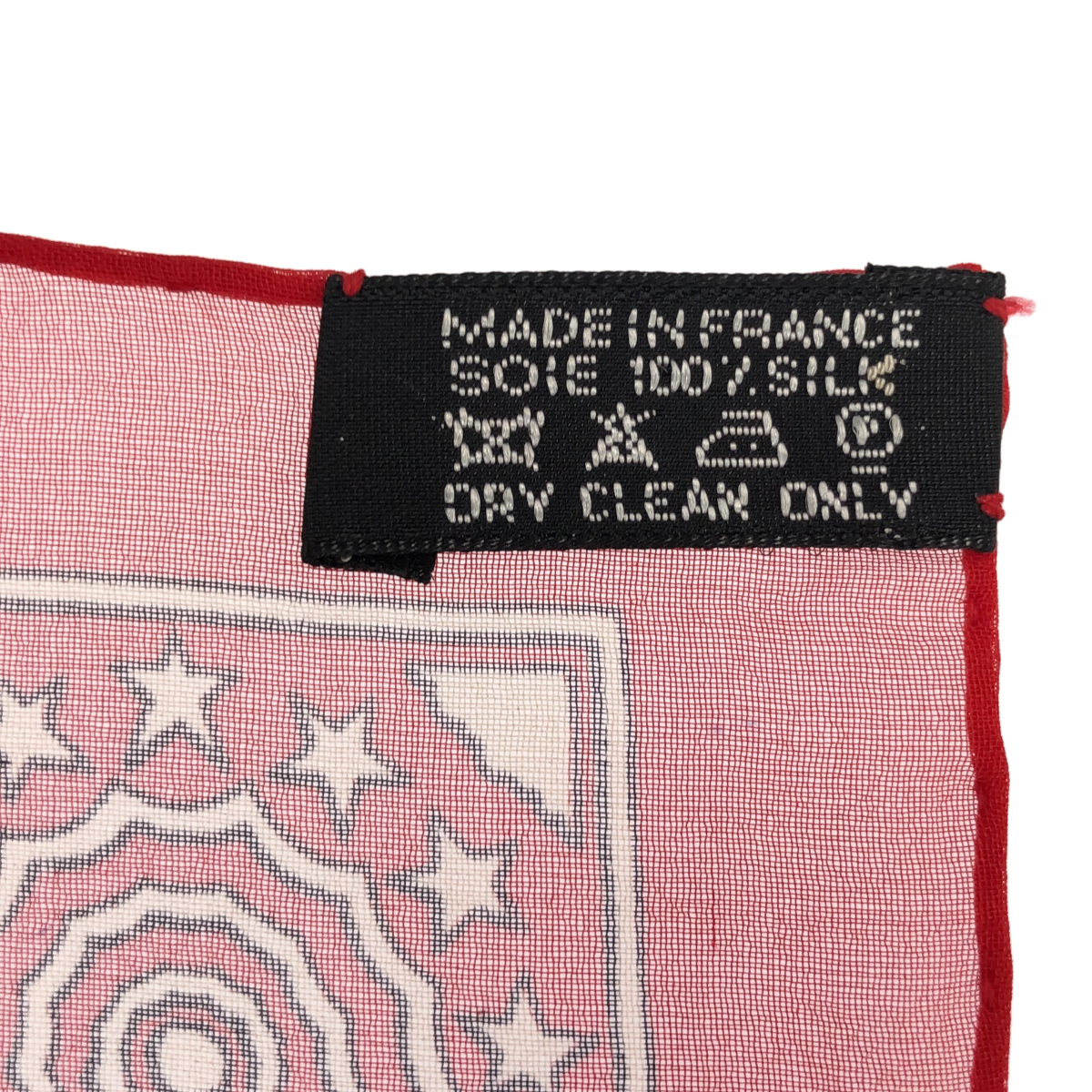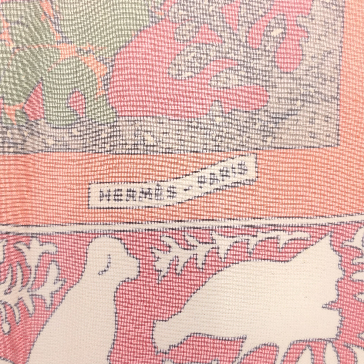 エルメスのスカーフになります。透け感のあるデザインになっています。カラーは赤がメインです。重なると色が濃くなります。Aランク。保存によるシワがございますが、綺麗なお品です。 | |