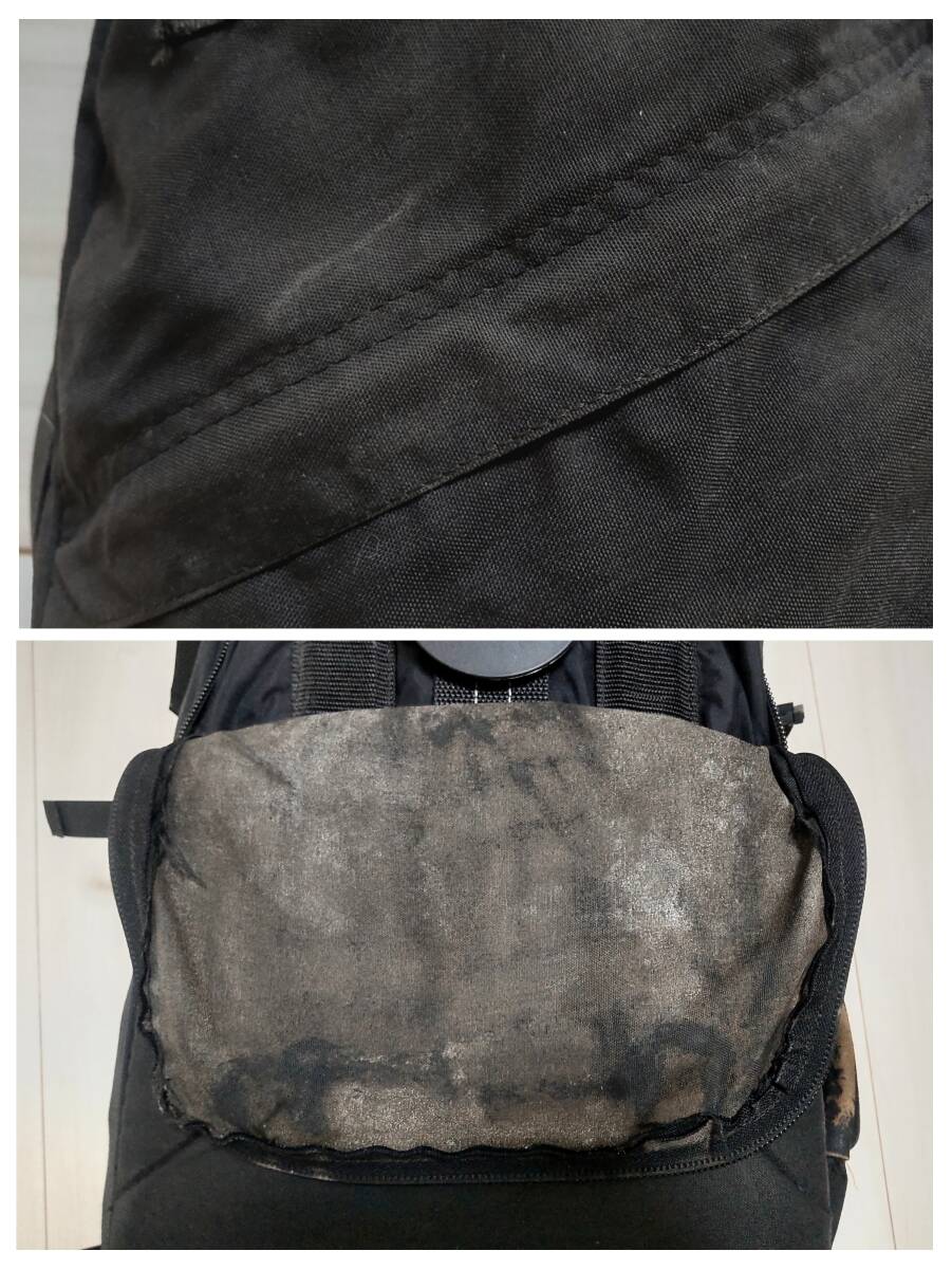 アメリカ、JANDD(ジャンド)のトラベルパックです ■ハイクオリティのパック類を作っているブランドです 現在ではほとんど見かけないと思います ■アメリカ製です ■デイパックが付いております ジッパーで取り外せます 旅行先での移動する際に便利です ■サイズは 素人採寸ですが ものを入れたおおよその値で 本体(写真2枚目の状態で)・・・縦62cm 横36cm 奥行き27cm デイパック(写真7枚目の状態で)・・・縦48cm 横34cm 奥行き9cm ありました ■バックパック、手提げ、ショルダーの3通りの使い方ができます ■ただショルダーバッグとしてお使いの際、ストラップを本体に取り付けるデバイスが1つ壊れており別の箱ものに代用しておりますのでよろしくお願いします(写真9枚目をご参照下さい)■バックパックとしてご使用しない場合はショルダーとウエストベルトを本体内側に収納出来ます ベルト類は比較的しっかりとしたものとなっております ■ユーズドになりますので使用感があります またいくつか特筆すべき点があります 1.本体、デイパックのに内側のコーティングに汚れやダメージが全体的にあります(写真8.10枚目をご参照下さい) 2.デイパックの正面側に色落ちや汚れ、本体の数か所に汚れがあります(写真9.10枚目をご参照下さい)4.手提げのハンドルのレザー部やジッパーの金属部に擦れがあります(写真9枚目をご参照下さい)5.前述しました通りショルダーストラップのデバイスが別のものになっております ■是非よろしくお願い致します