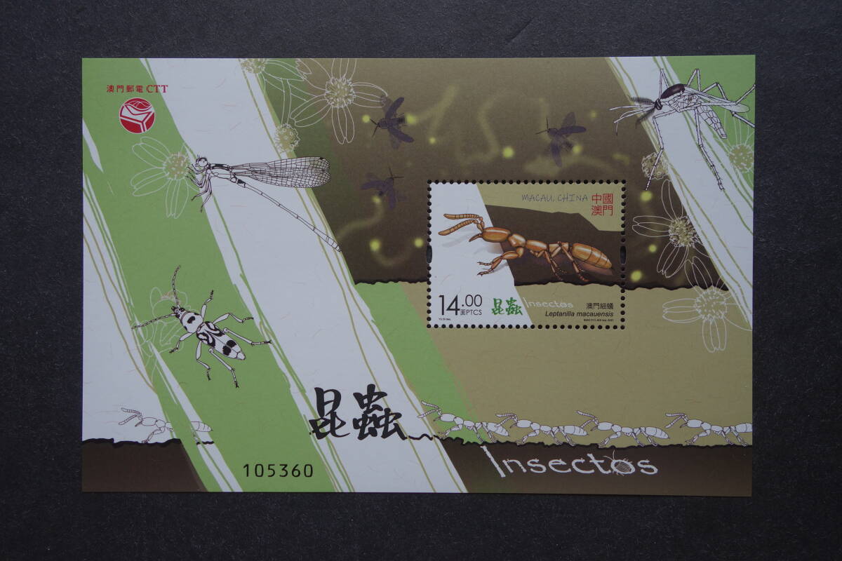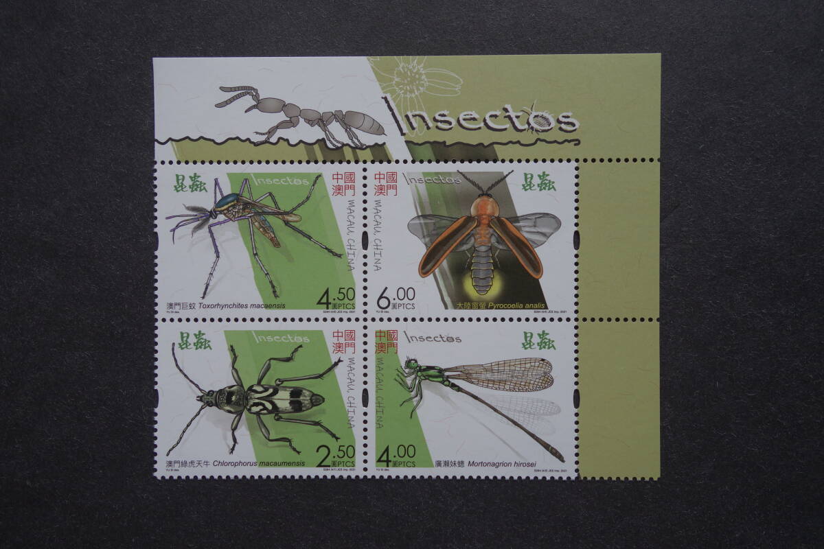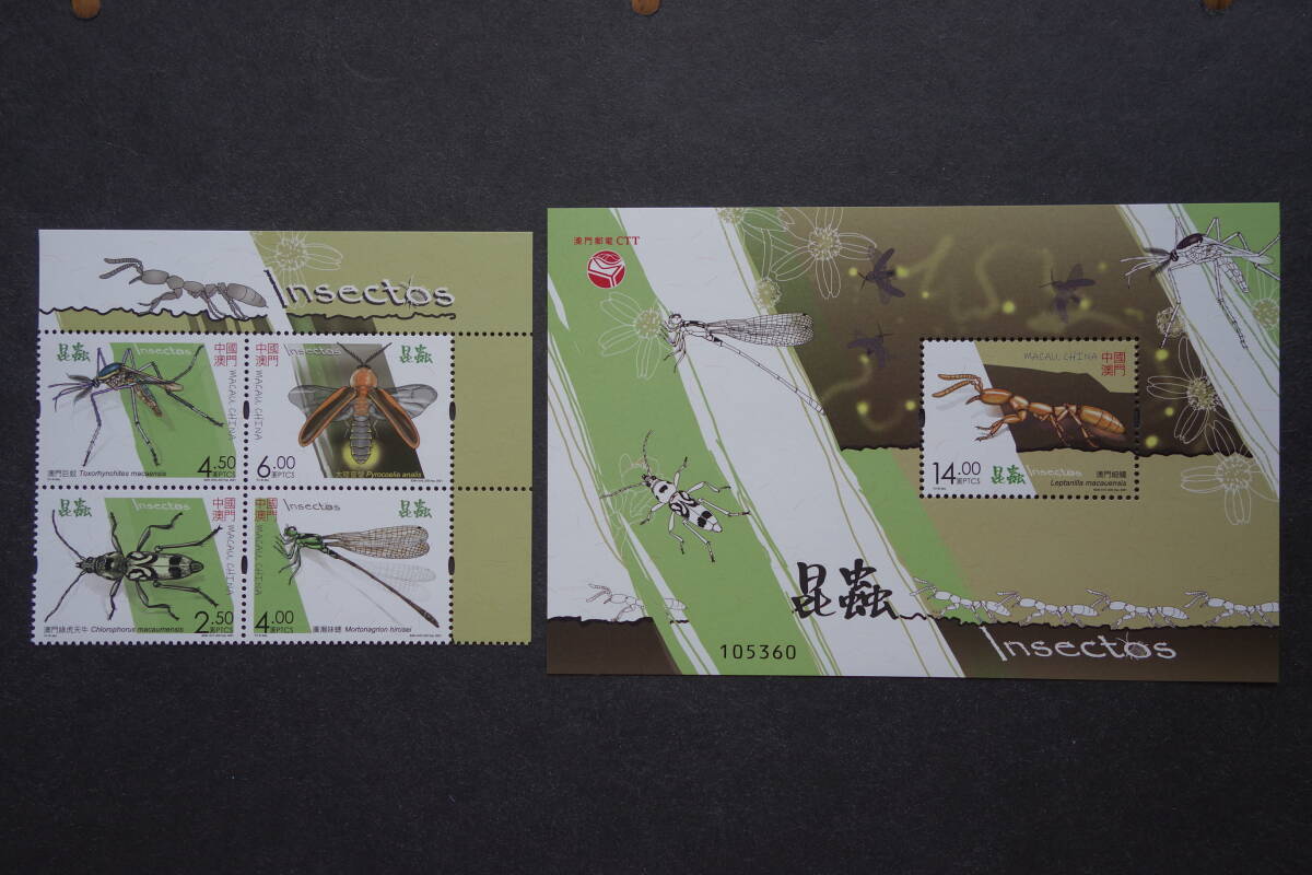 外国切手:中国マカオ切手 「昆虫」 小型シートと田型連刷 未使用