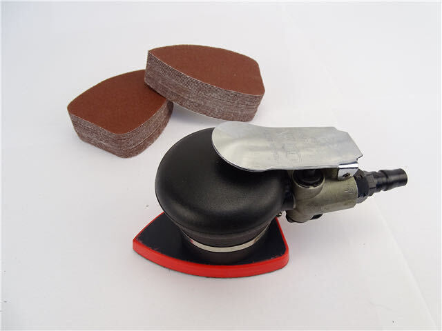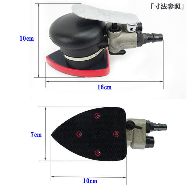 | 売り切り!未使用 三角形 70X900mm エアーオービタルサンダー エアーサンダー 非吸塵式 空気圧 回転調整式 ダブルアクション 軽量 760g ハンディタイプ #600 サンドペーパー 50枚付き | |