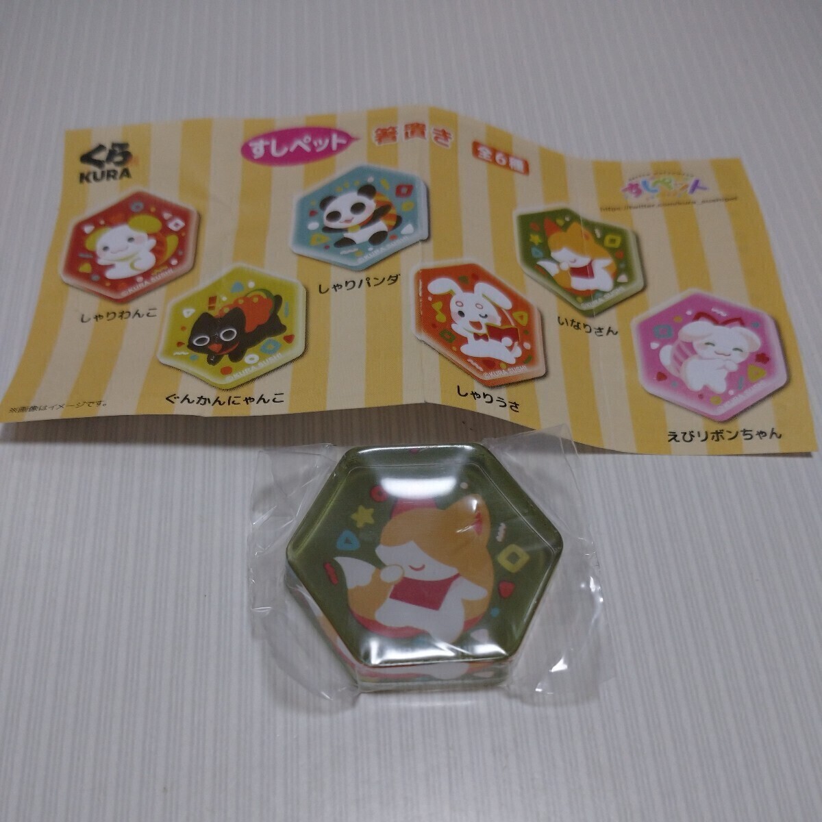 くら寿司ビッくらポン景品のすしペット箸置きいなりさんです。