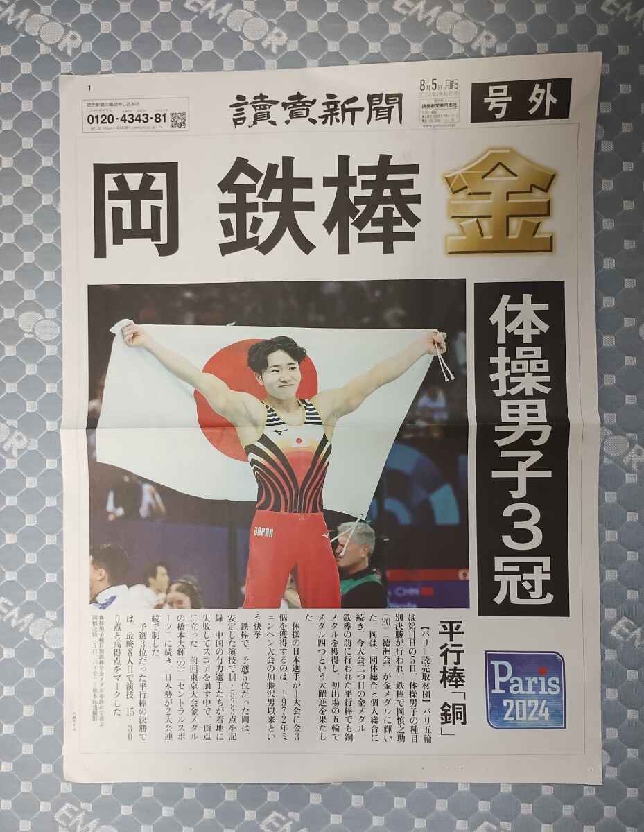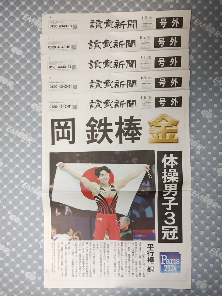 読売新聞の8月5日の号外の5枚セットになります。