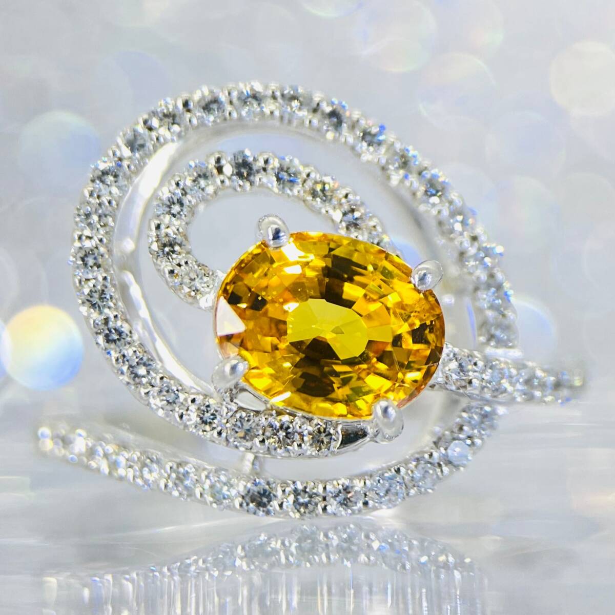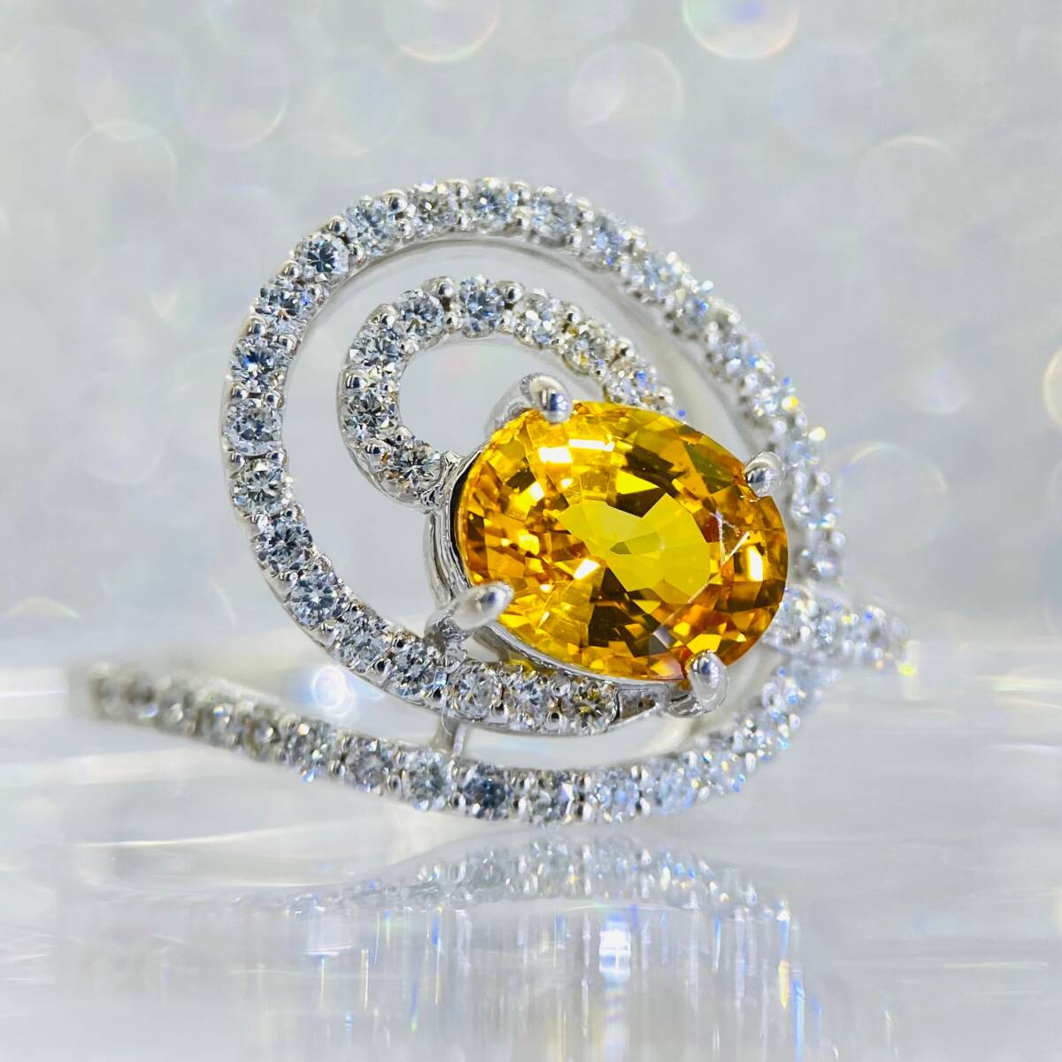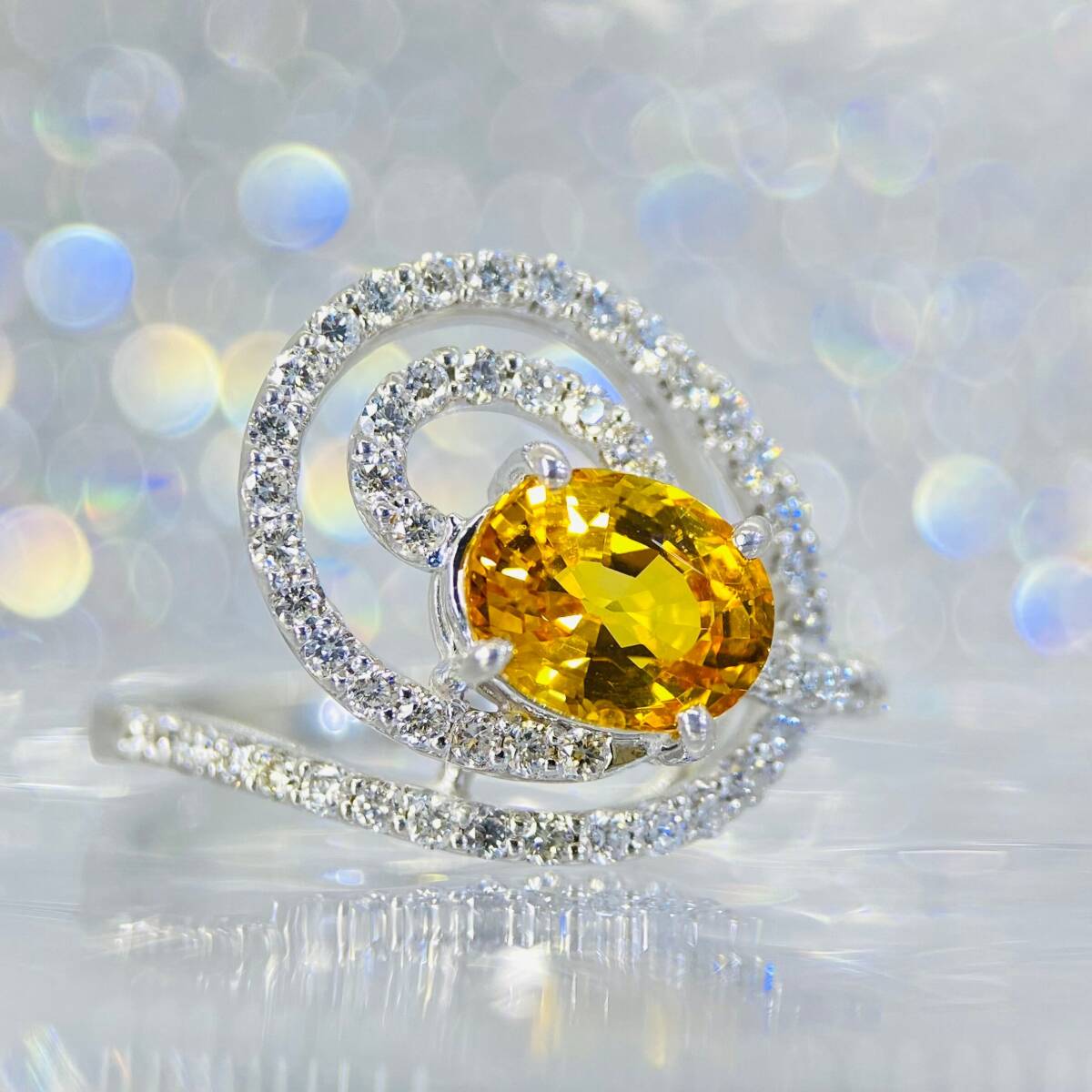 スリランカでしか産出されない超希少石で、ビビッドイエローに美しいオレンジを宿した、大変美しい、希少な宝石です。