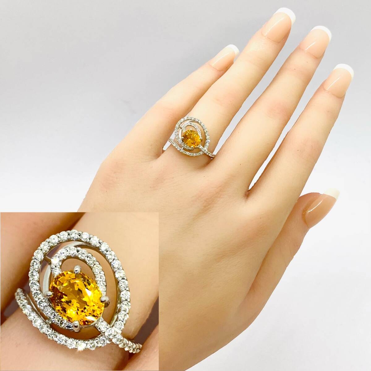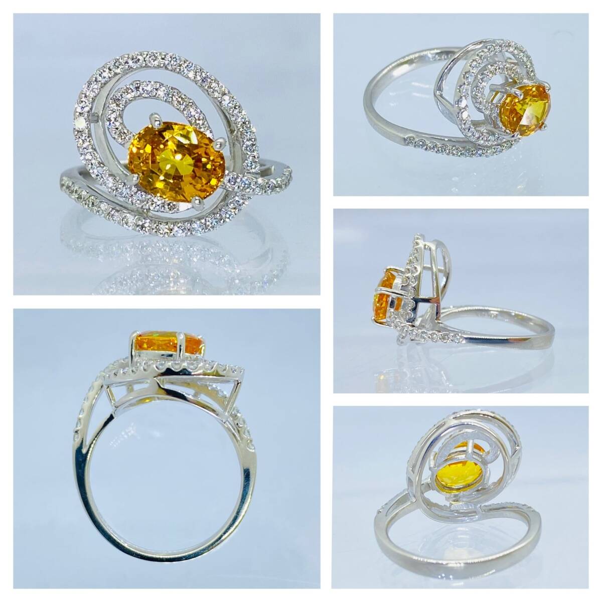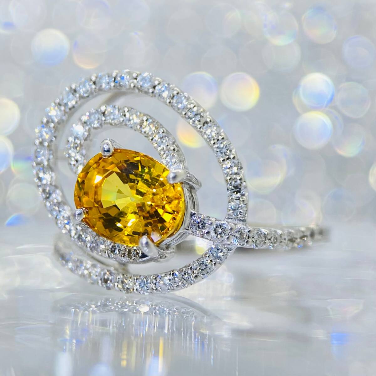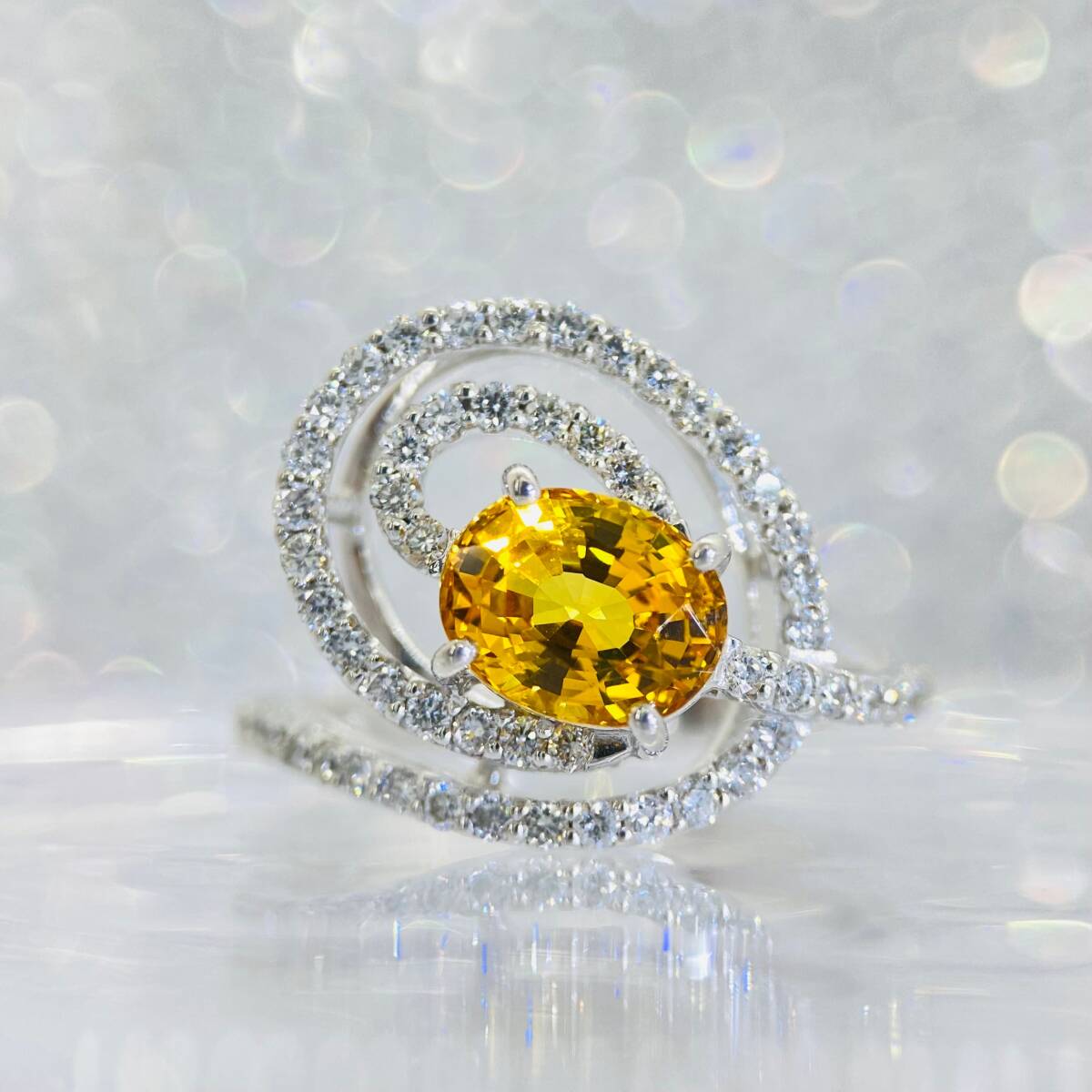 スリランカでしか産出されない超希少石で、ビビッドイエローに美しいオレンジを宿した、大変美しい、希少な宝石です。
