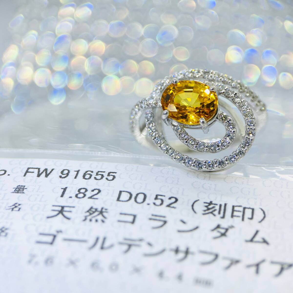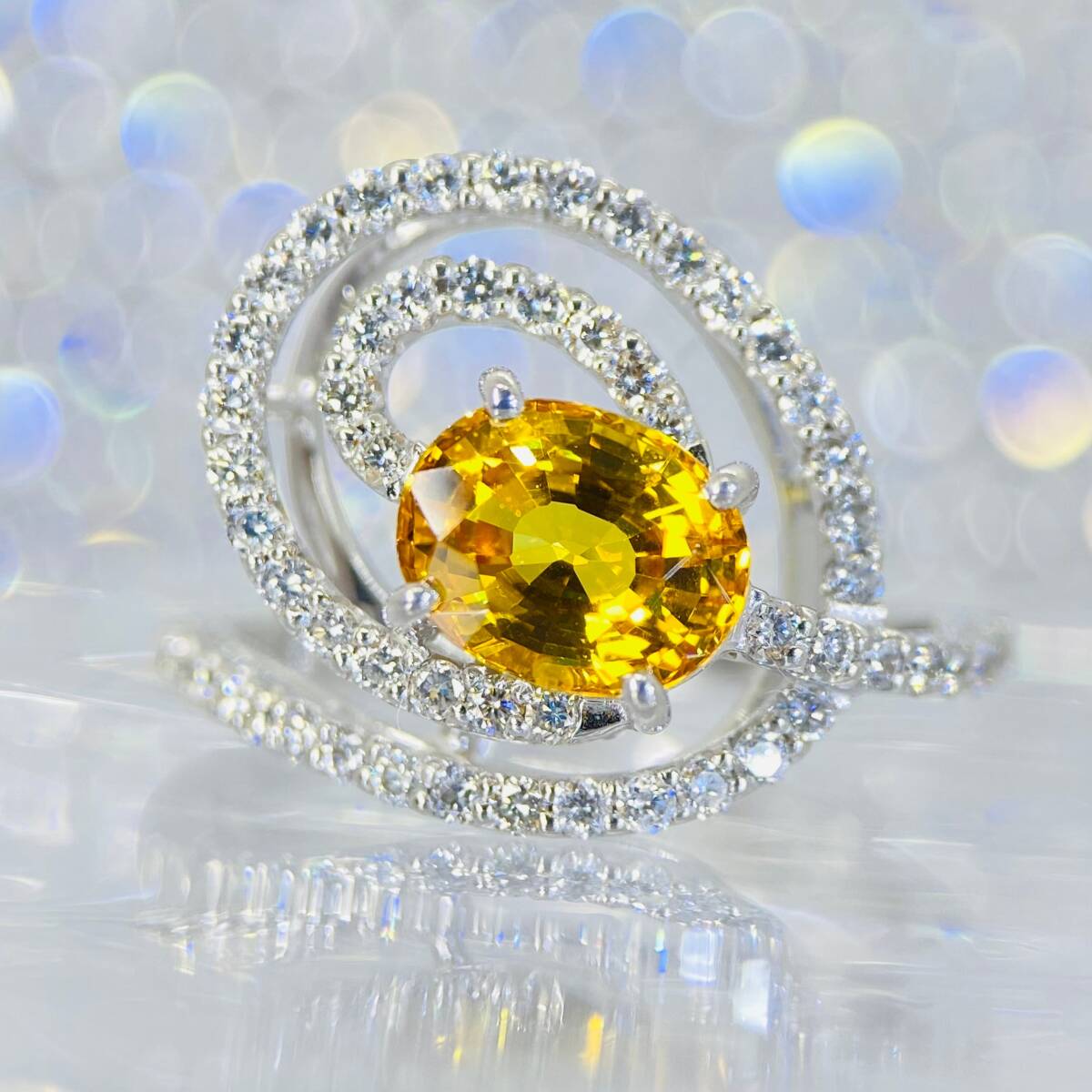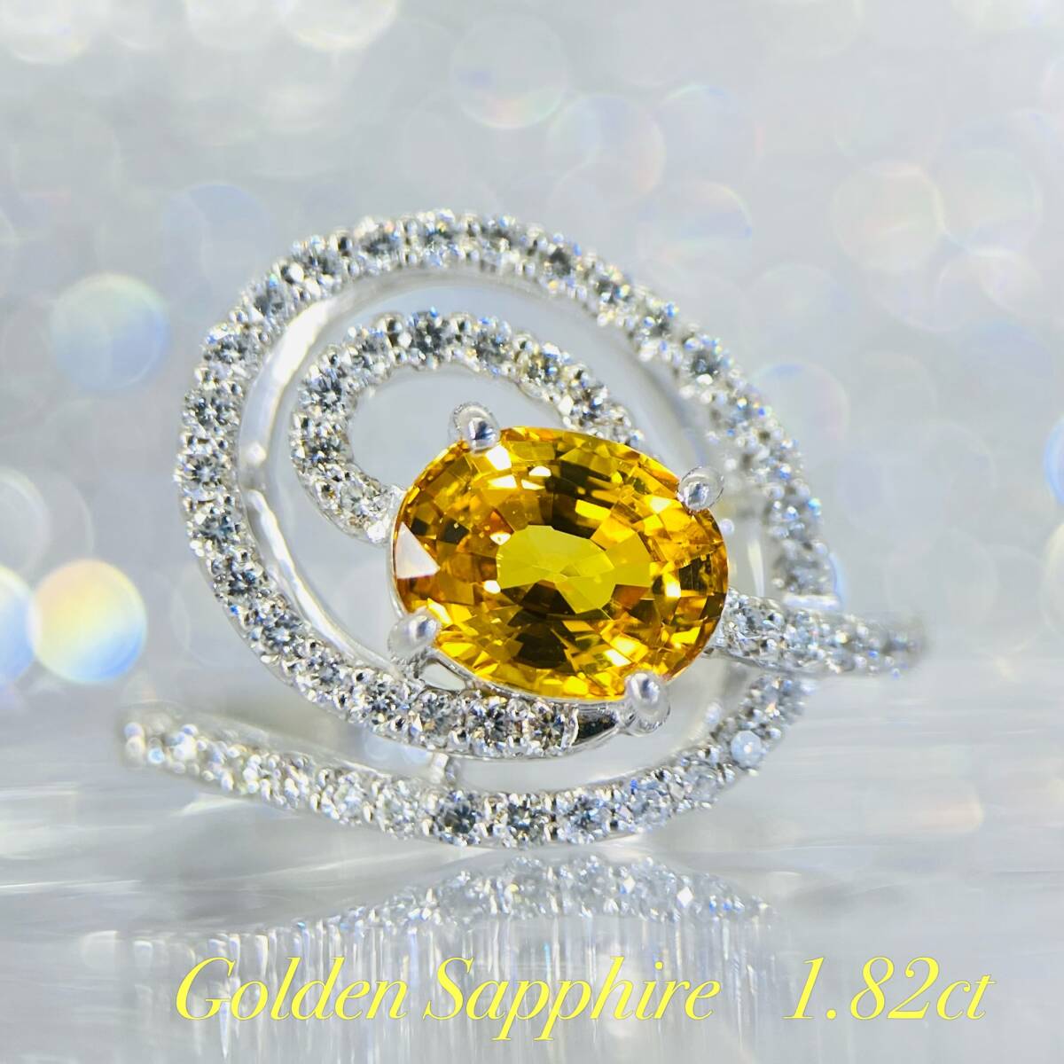 新品【希少ゴールデンサファイア】大粒1.8ct 鑑別済み 一点物リング WG製