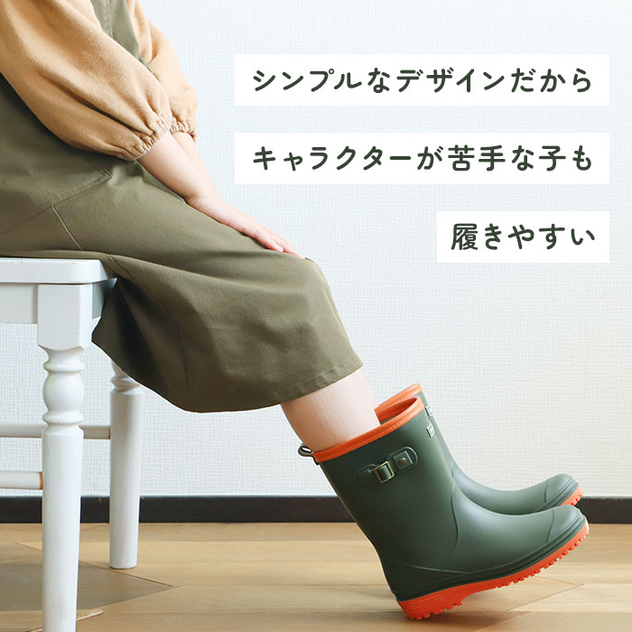 | 商品説明 | ・ミドル丈のキッズ用レインブーツ。 ・マットな風合いのジョッキータイプデザインで、性別関わらずスタイリッシュに着こなせる! ・サイドに施された、アンティーク風ゴールドのメタルパーツがかっこいい♪ ・丈夫な塩化ビニール素材で、雨の日だけでなく水遊びのときにも大活躍♪ ・アウトソールには、深い溝のスリップ加工を施しており、滑りやすい雨や雪の日も安心。 ・ブーツの中が濡れてしまっても、取り外し可能なインソールなのでお手入れが簡単。 ・履き口にタブがついているので、お子様でも脱ぎ履きしやすい! |