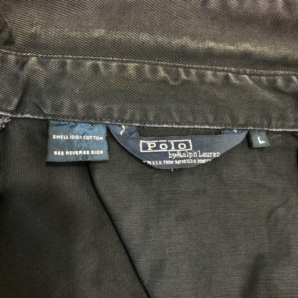 | [商品管理番号] R6352 [ブランド] Polo by Ralph Lauren/ポロ ラルフローレン [サイズ] L [実寸サイズ] 肩幅:約56cm 着丈:約64cm 身幅:約68cm 袖丈:約62cm [主な素材] 表地 : コットン [色] ネイビー [仕様] ワンポイントロゴ [状態] 汚れ:袖、背中 特記事項:使用感あり、色褪せ | |||