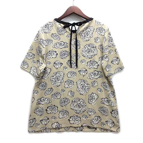 エッセンシャルアントワープ Essentiel Antwerp 花柄 ブラウス カットソー サッカー生地 半袖 ベージュ 36 レディース
