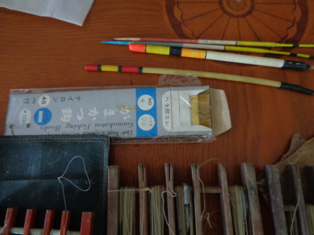 魚取り 古い 仕掛け 川釣り 錘 浮き 竹製 糸巻 針 鯉 ヤマメ 鮎 はや イワナ