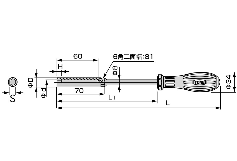 商品説明 | 六角ボルト・ナット着脱用に先端がソケット形状になったドライバーです。深くて狭い箇所での作業に最適です。 ボルト・ナットの締付け・緩め作業用。 ・工具(メガネやスパナ)を使って増締め・ゆるめができるボルスター付 ・グリップにサイズ表記 ・力が入れやすいグリップ形状 ・ねじを逃がす長穴を設けていますのでナットからネジが突き出しても使用可能 ※プラスチック柄は絶縁のためのものではありません。電気の流れているものには使用しないでください。 |