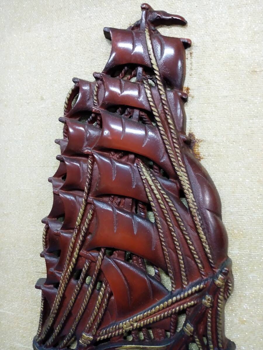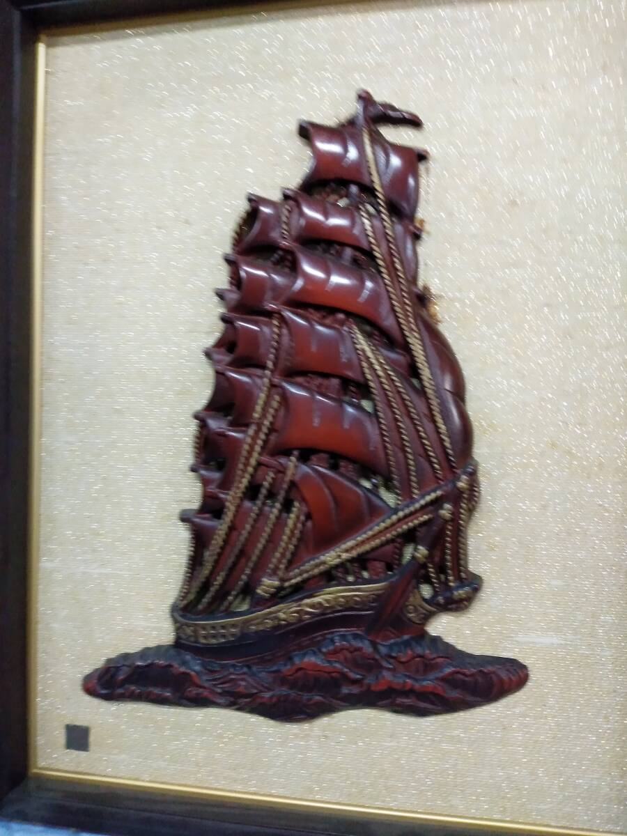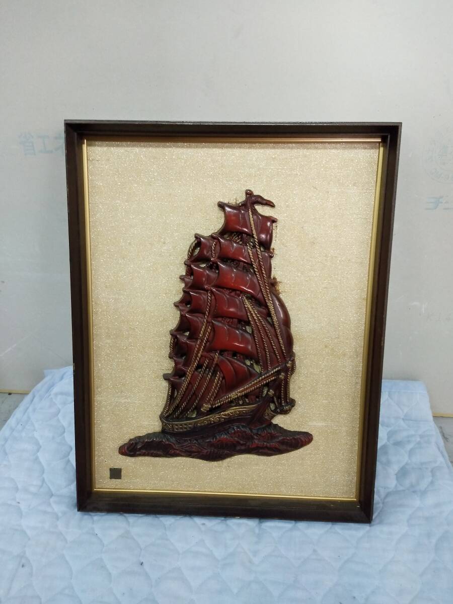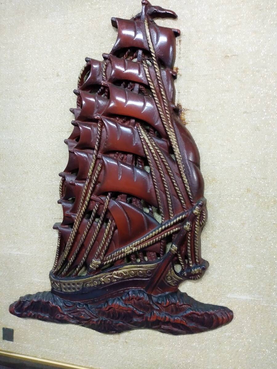 0704-0002  中古★アンティーク ヴィンテージ 帆船 レリーフ 額絵立体画 額装