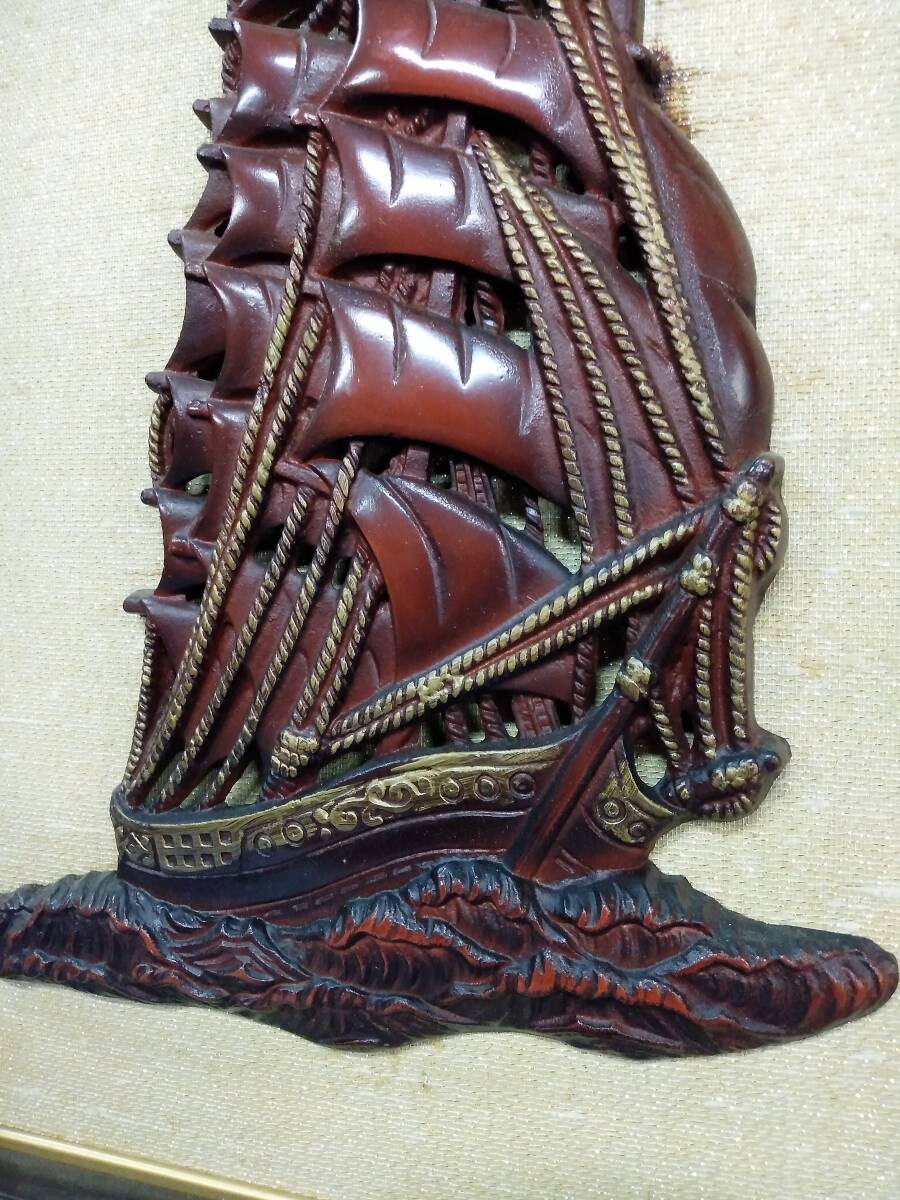 アンティーク ヴィンテージ 帆船 レリーフ 額絵立体画 額装