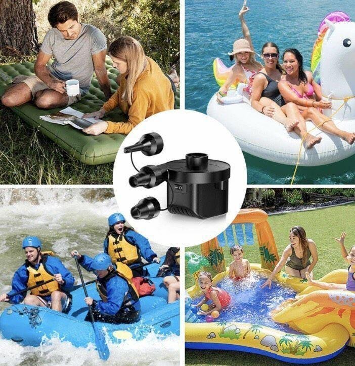 【空気入れ抜き両対応?時間や体力節約】空気入れと空気抜き、一台だけで両方対応できます。電動エアーポンプで空気を入れ、空気を抜くことが出来ます。使い方も簡単、ノズルをホースの口に入れる、ON/OFF ボタンを押すと素早く空気入れと空気抜き出来ます。手動ポンプより時間や体力を節約出来ます 【二つ給電方式?コンパクトで携帯便利】手のひらに収まるサイズで非常にコンパクトどこでも使えるので持ち運びも便利です。本製品はACアダプター給電、シガーソケット給電の二つの給電方式が搭載しており、家庭用のAC100V~240Vまたは車のシガーソケットDC12V(24Vは不可)の電源使用できます。 【3種類付け替えノズル付き?高い交換性】3種類の付け替えノズルで、用途に合わせてノズルを交換可能、高い交換性を実現!浮き輪はもちろん、大型プールの大口径空気穴などにも対応できます。ビーチボールや浮き輪、ビニールプールの空気入れがとってもラクチンになります。 ご注意:20分以上の連続運行させないでください。長時間動作すると過熱による故障の恐れがあります。