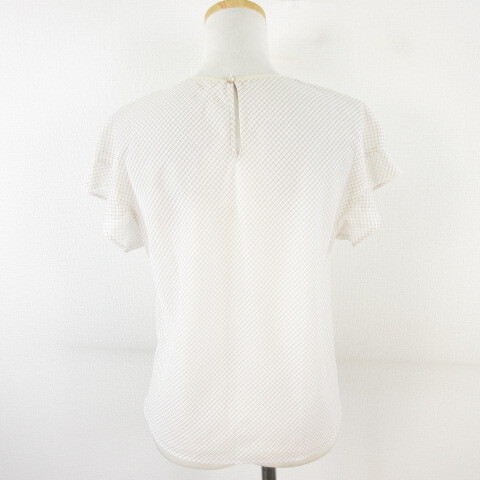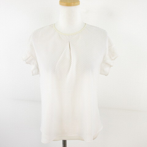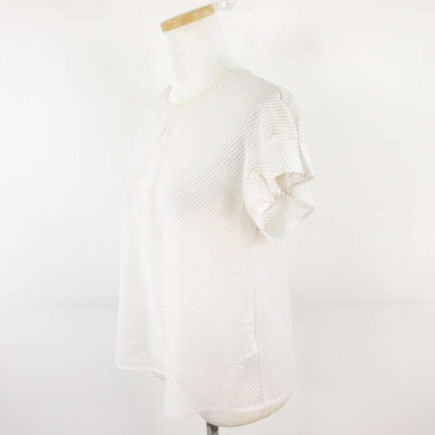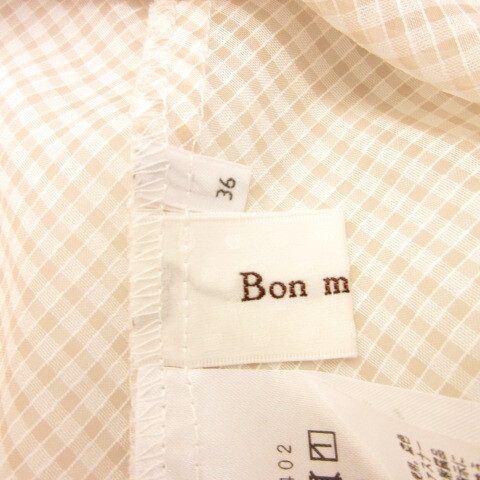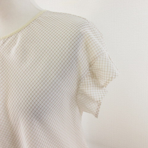 ボンメルスリー BON MERCERIE シアーカットソー チェック フレンチスリーブ ベージュ 白 36 *A56 レディース