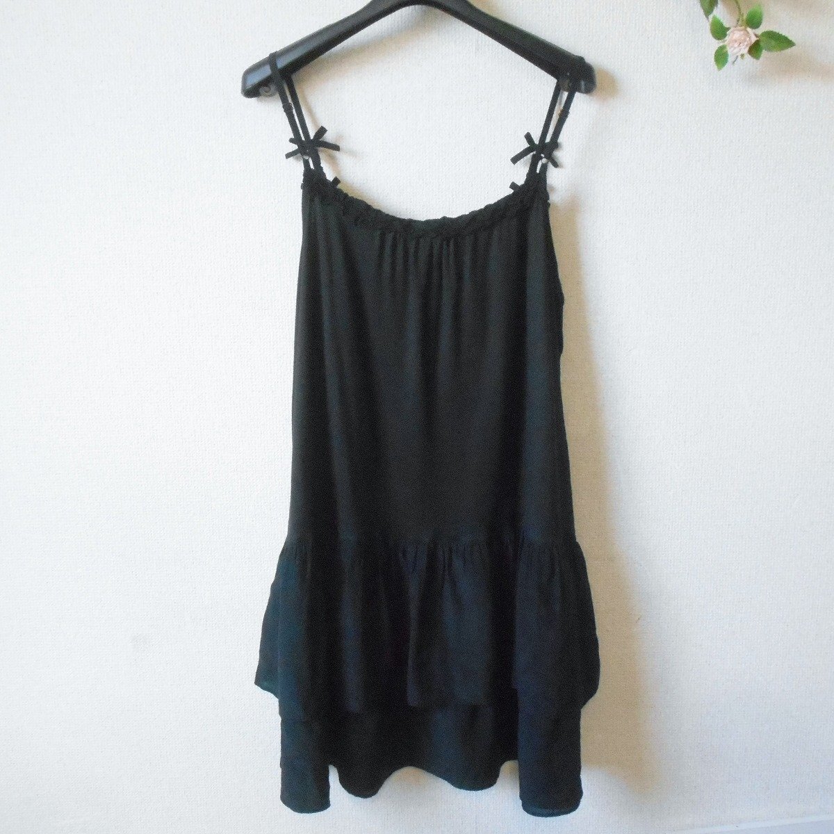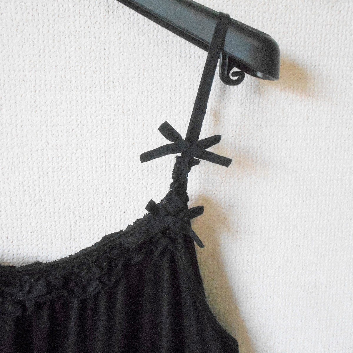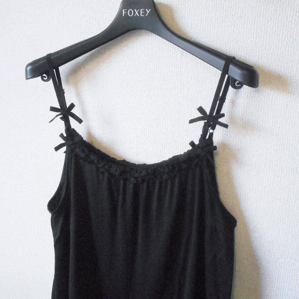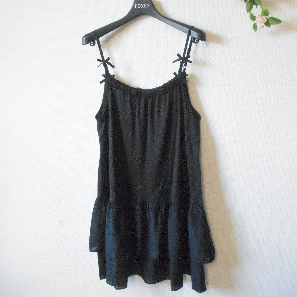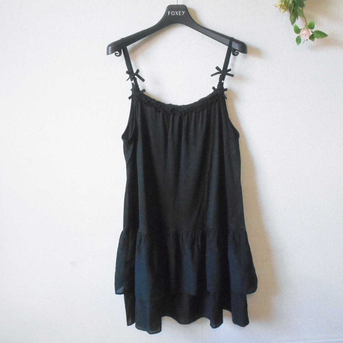 【ポイント】インゲボルグのキャミチュニックになります。お色は黒色で、春夏とレイヤードベースとしてはオールシーズン使えるお品です。フリルとリボンが使用されたとっても素敵なデザインです。