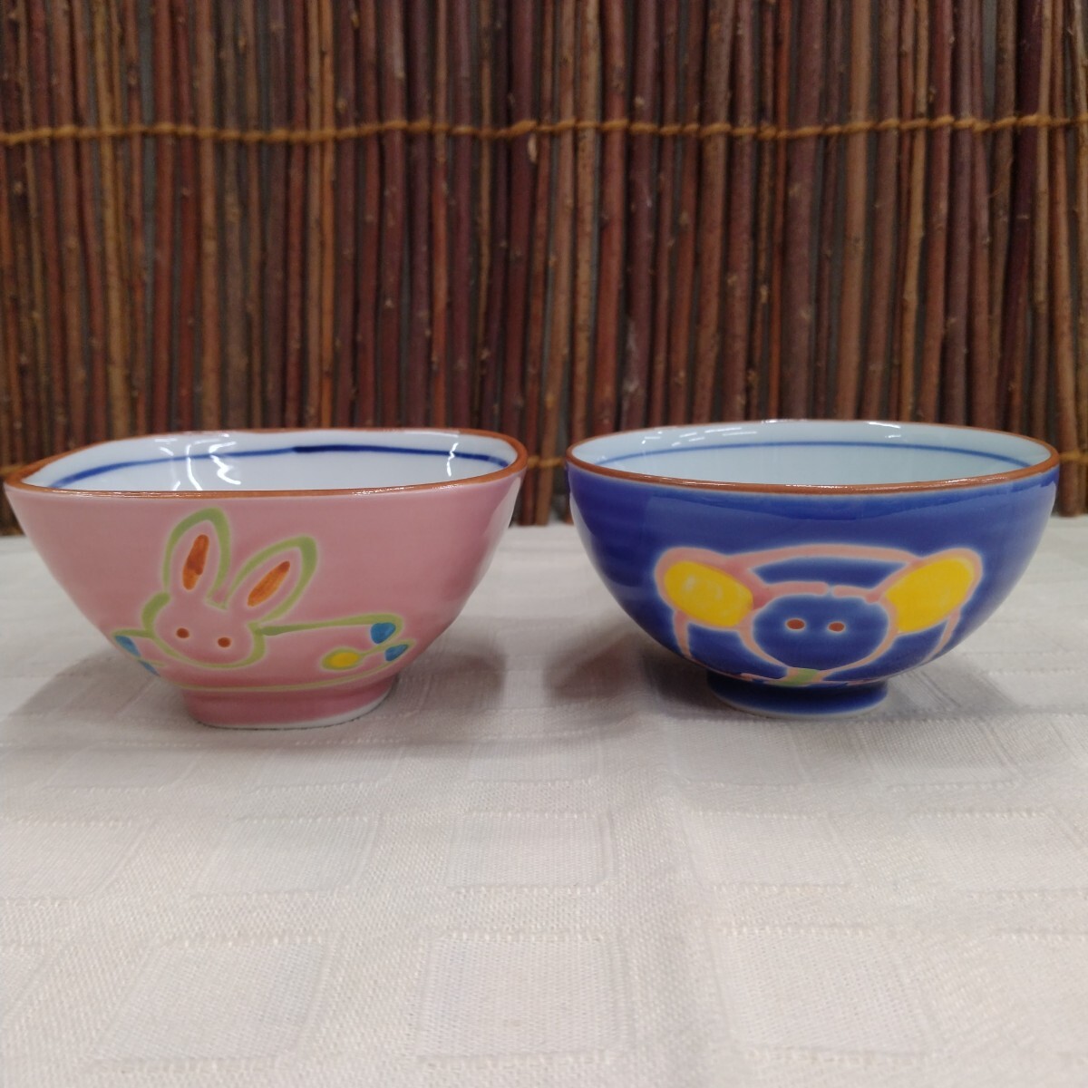 商品名 : 波佐見焼/有田焼 動物 ミニ茶碗 2個(四角 うさぎ 丸 ゾウ)