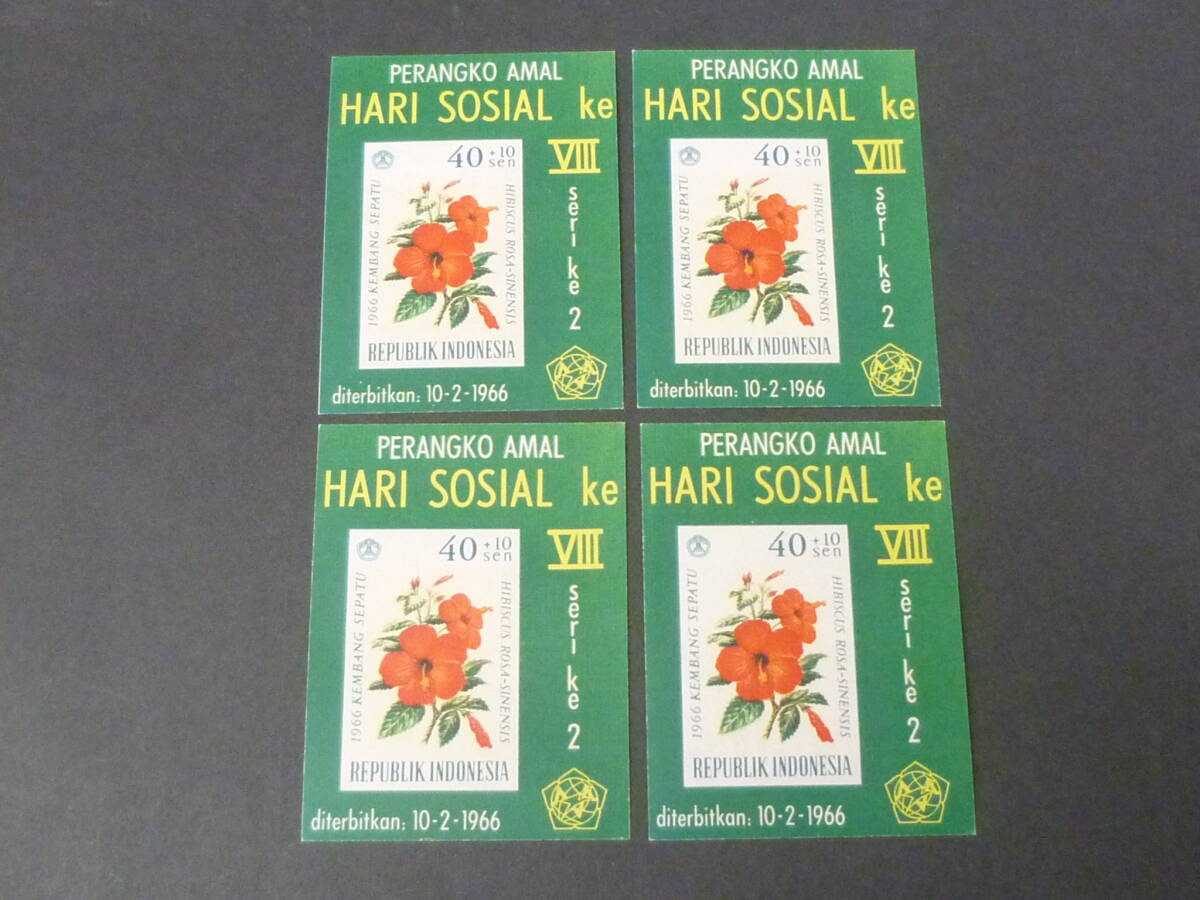 24L P №27 インドネシア切手 1957年 SC#B198a ハイビスカス 小型シート 計4枚 未使用NH・VF 【SC評価 $24】