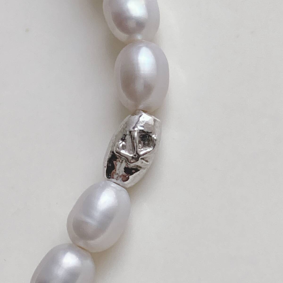 組曲 ブレスレット ライスパール シルバー 伸縮ブレスレット K刻印 細目 キレイ☆japan Vintage jewelry accessoriesk0772