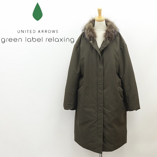 美品◆green label relaxing ユナイテッドアローズ グリーンレーベルリラクシング FM 2WAY ファー ノーステッチ ダウン コート オリーブ 38 | |
