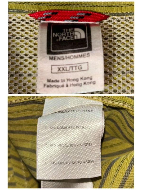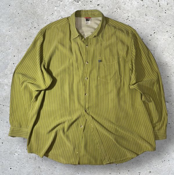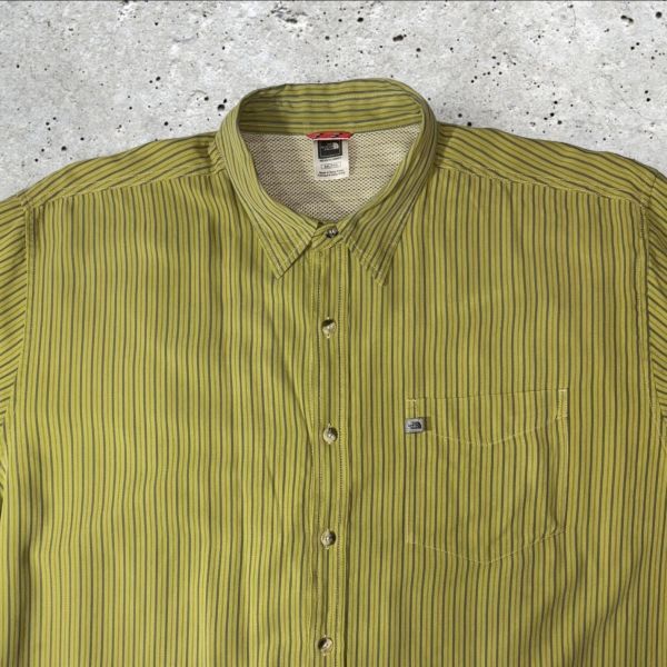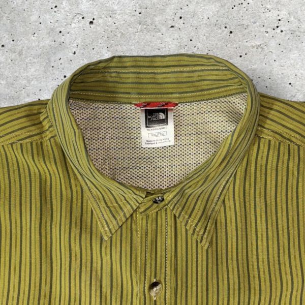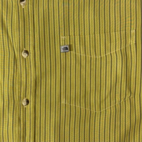 THE NORTH FACE 長袖シャツ sizeXXL グリーン系ストライプ柄 COTTON100% ピスネーム 柄ボタン ザノースフェイス クリーニング プレス済み USED 1616
