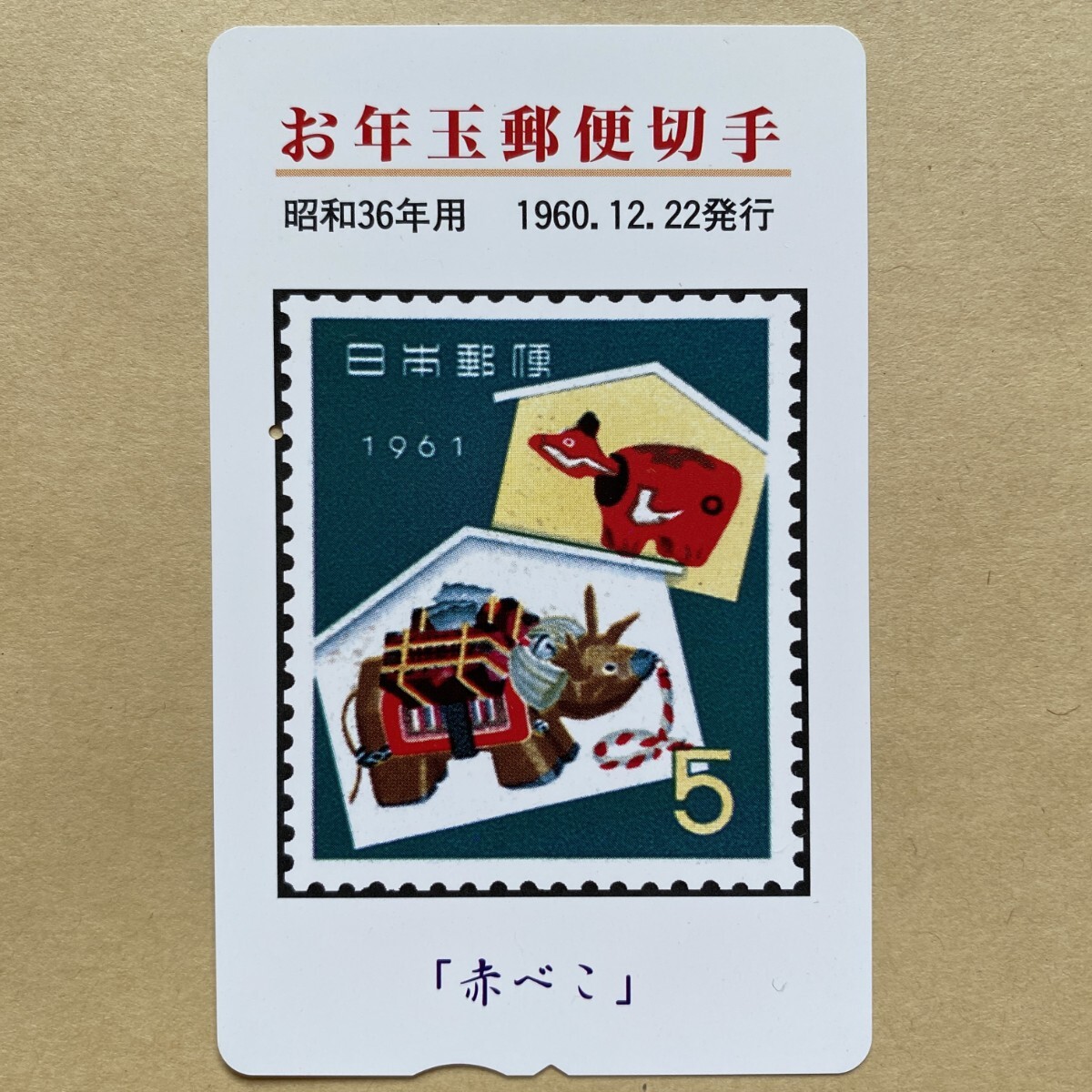 【使用済】 ふみカード 北陸版 お年玉郵便切手 昭和36年用 1960.12.22発行 「赤べこ」