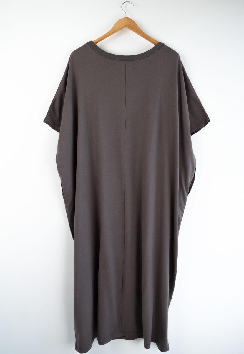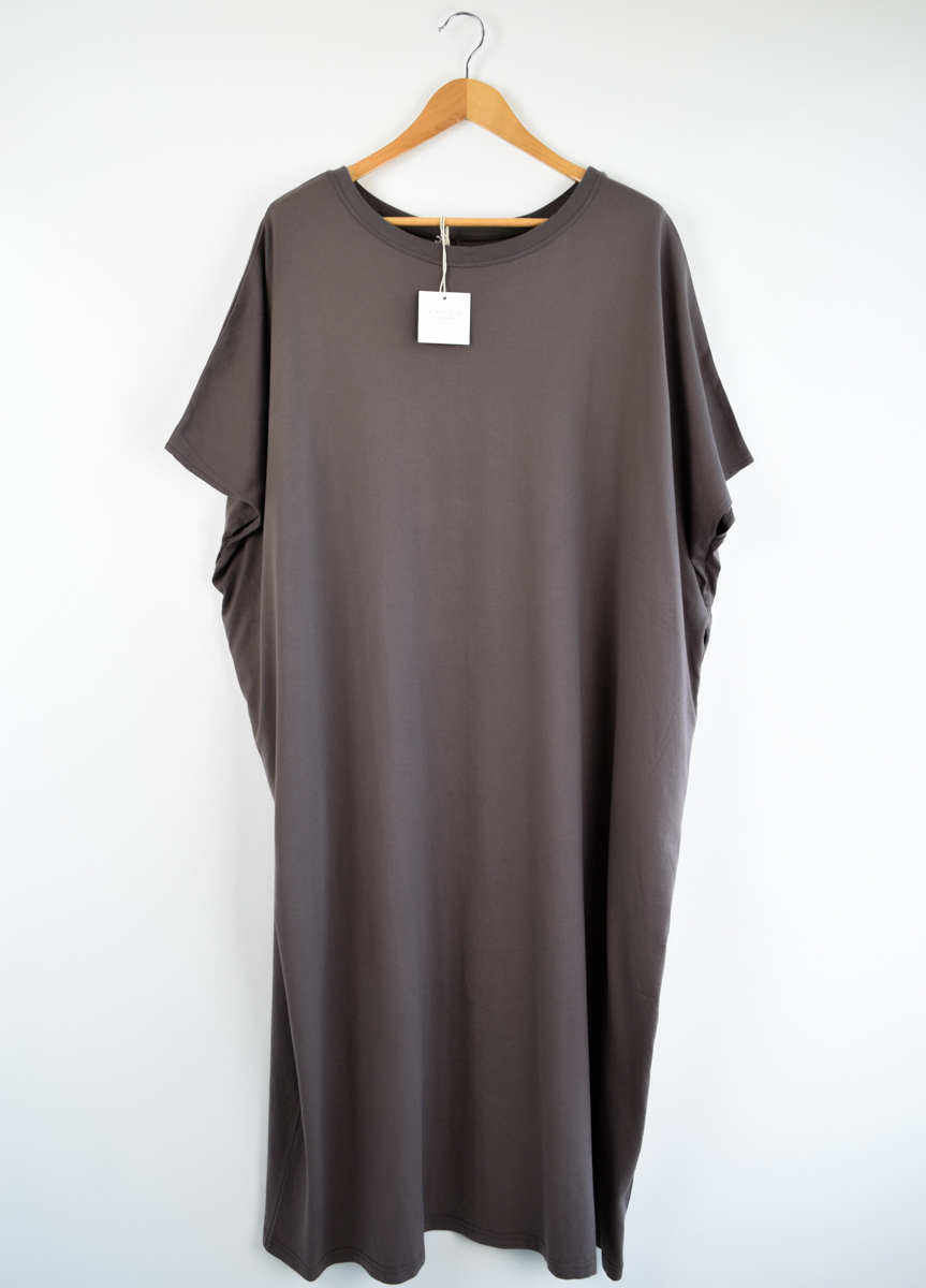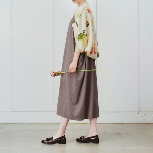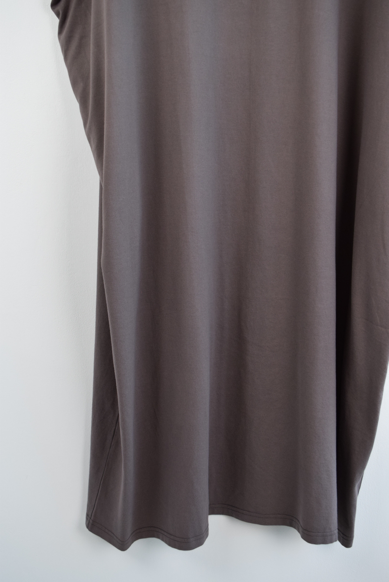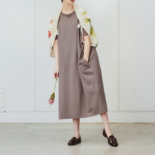 特徴: 40/2コーマ天竺を使用した カットソータイプのロングワンピース。 生地にふくらみをもたせた ソフトな仕上がりとなっています。 肩にシームの無いゆったりとしたシルエットと 柔らかくしなやかな生地感は相性が良く、 リラックスして着用することができます。 夏のお出かけやレジャーなどにもぴったりな カジュアルなワンピースです。