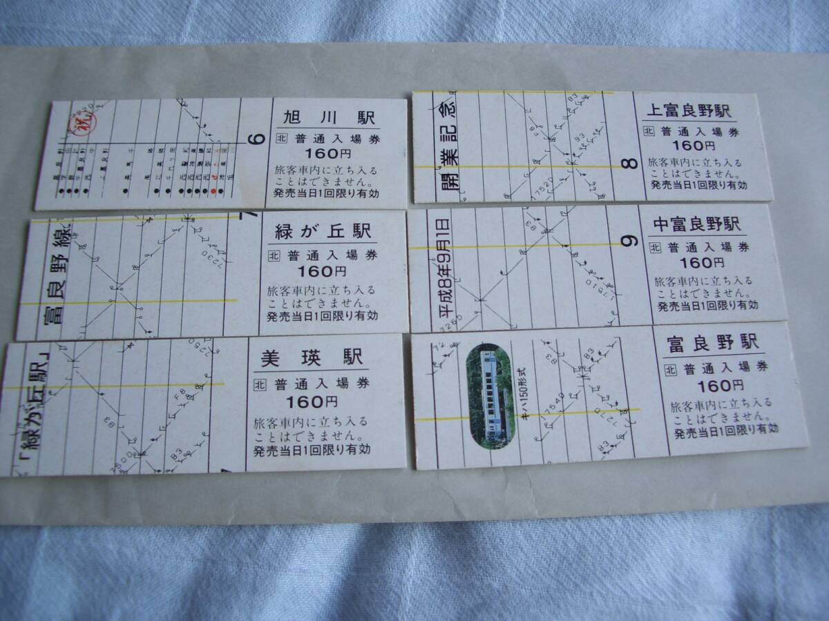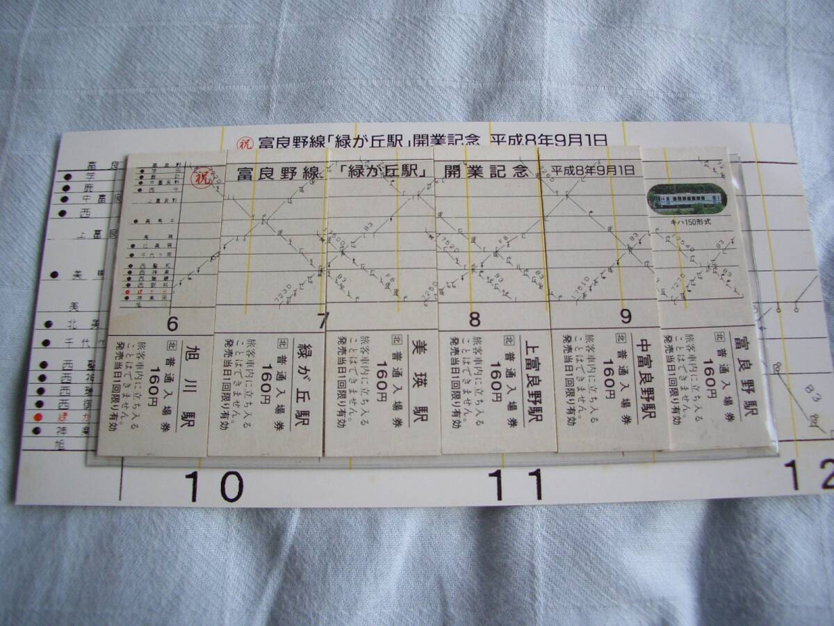 切符 北海道 記念切符 富良野線「緑が丘駅」開業記念入場券 平成8年9月1日 旭川、緑が丘、美瑛、上、中、富良野駅の6枚