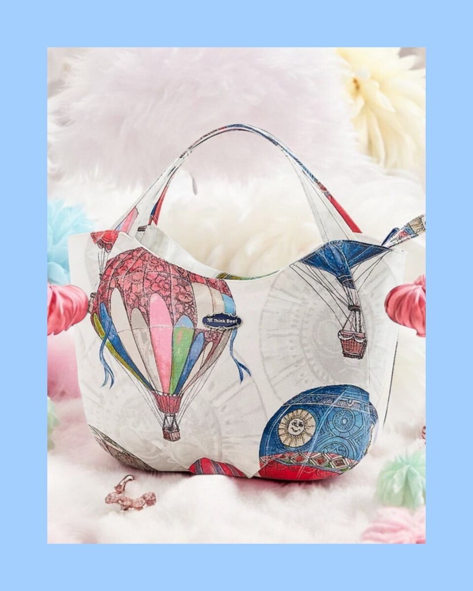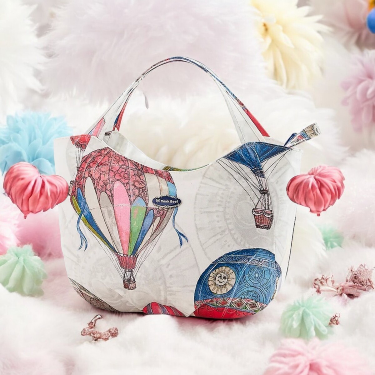 カラフルな気球が浮かぶ柄が個性的で可愛い軽量のバッグです!
