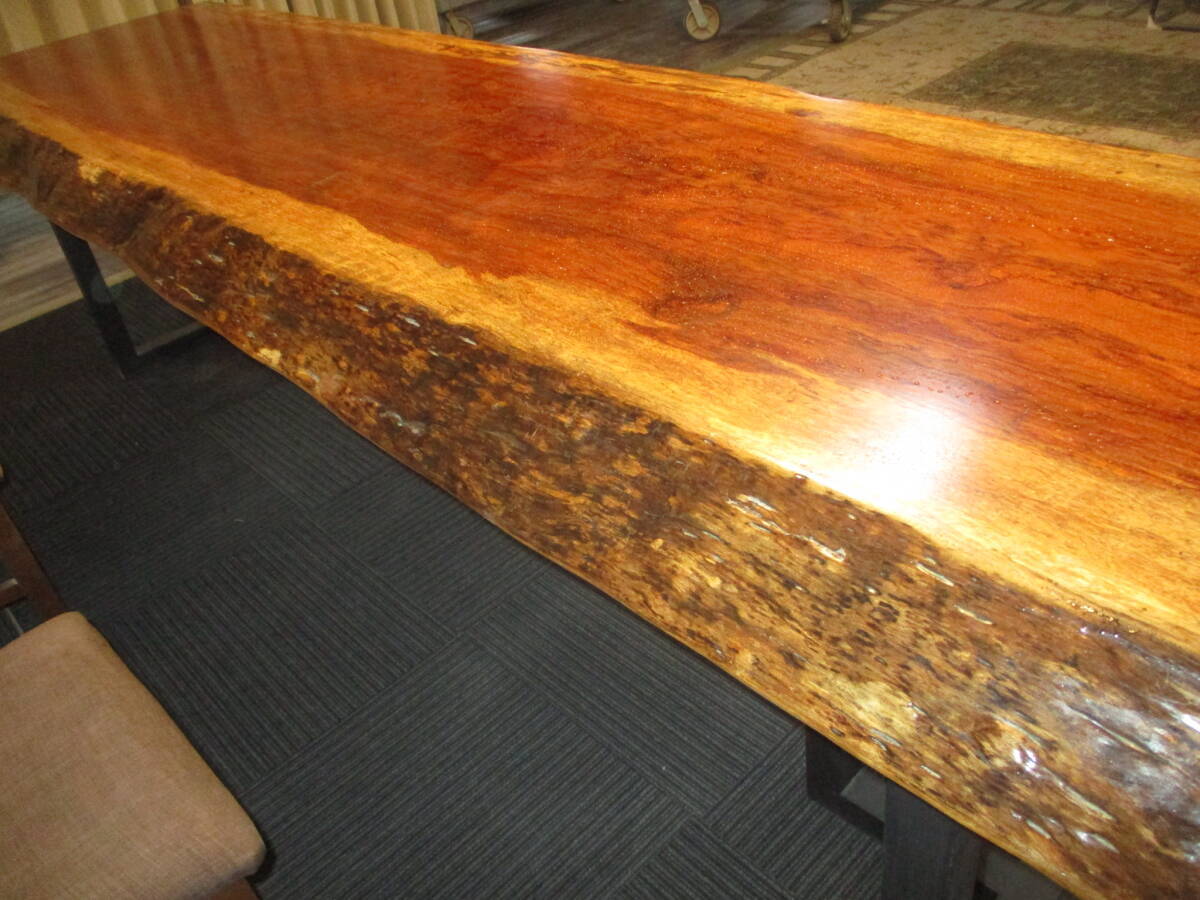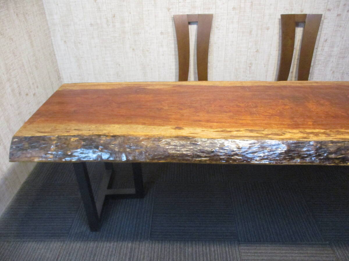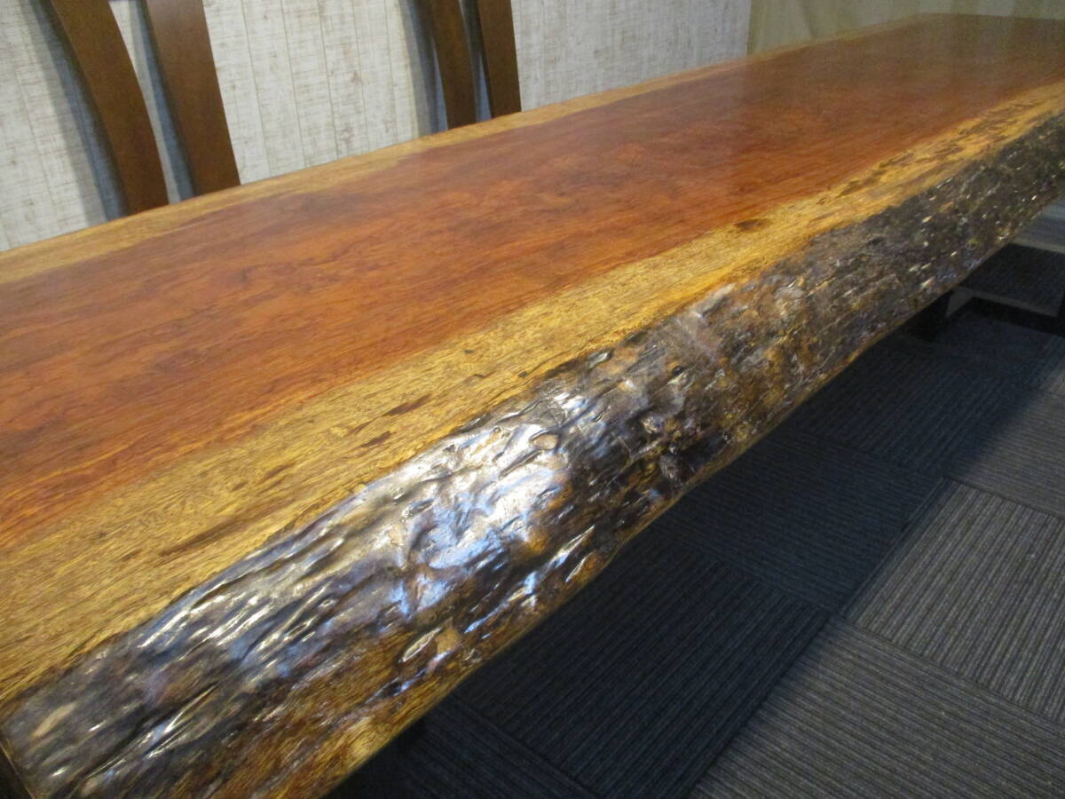 ブビンガの一枚板無垢のテーブルです。ワシントン条約で輸入禁止になった材木です。世界銘木中の銘木です。もともと稀少材で、高級テーブルとして取り扱われてきました。目立つ大きな節や節穴はありません。サイズはご希望に合わせてカットできます。なお、きれいに最終仕上げをしてお届けします。重量はかなりあります。