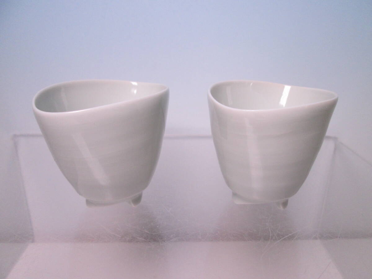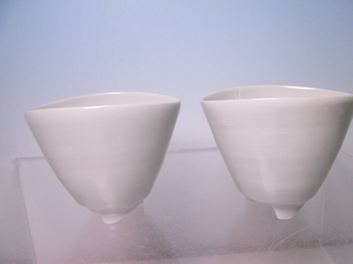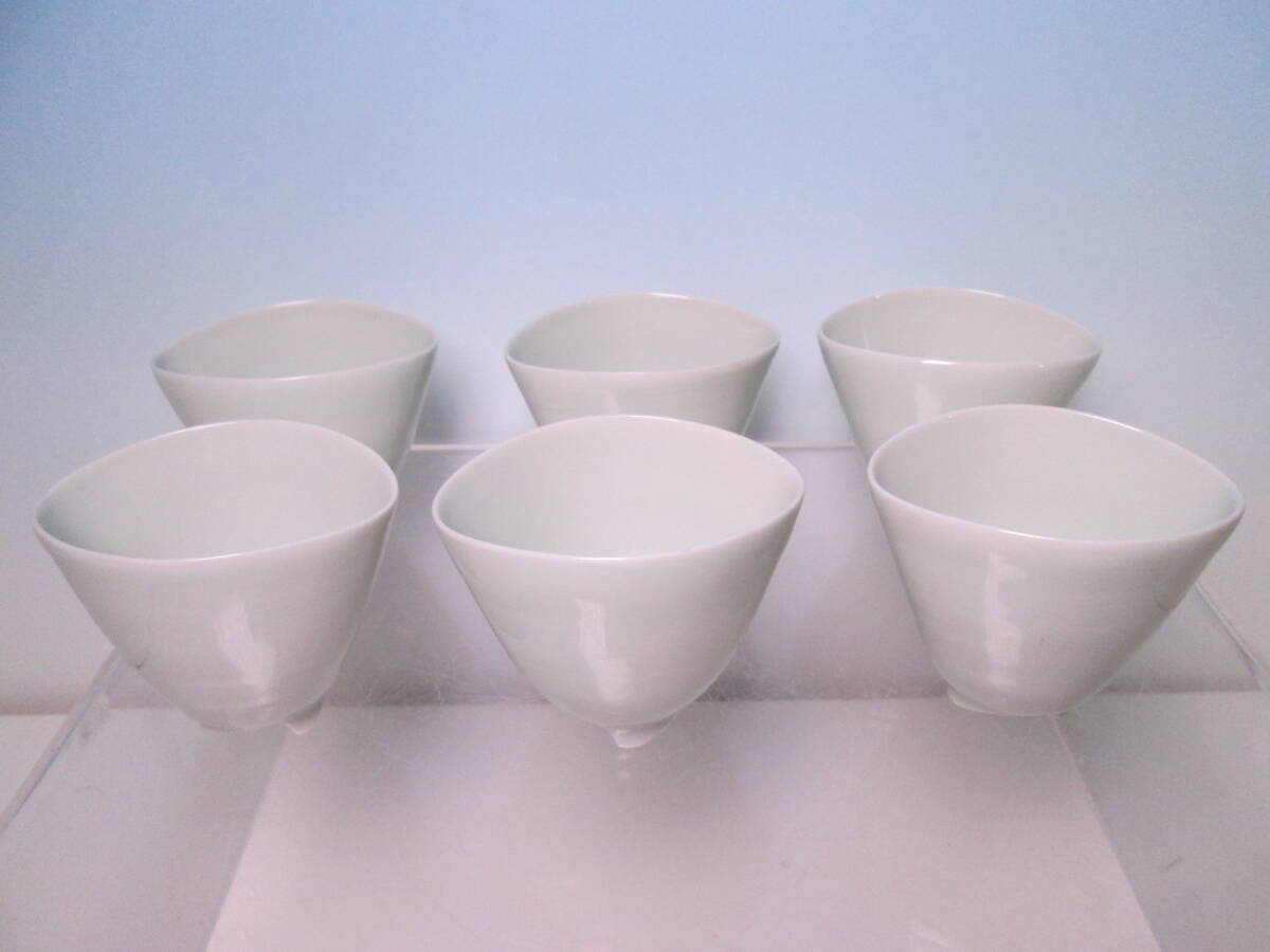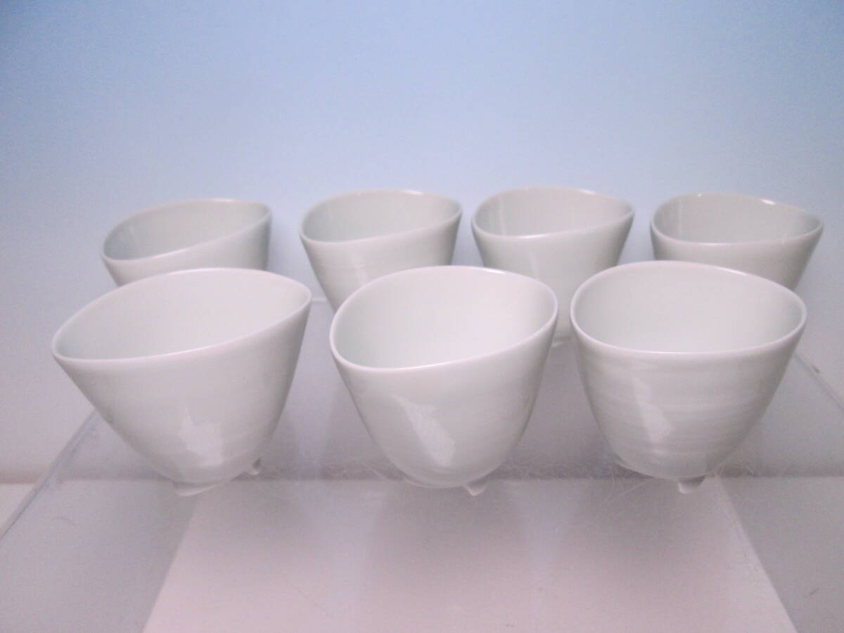 ☆お料理屋さんの器 和鳳作 青白磁 モダンな楕円形三つ足 小向付 六客 箱無し 酒杯/酒器/懐石/割烹/日本料理