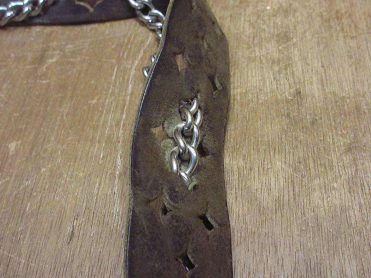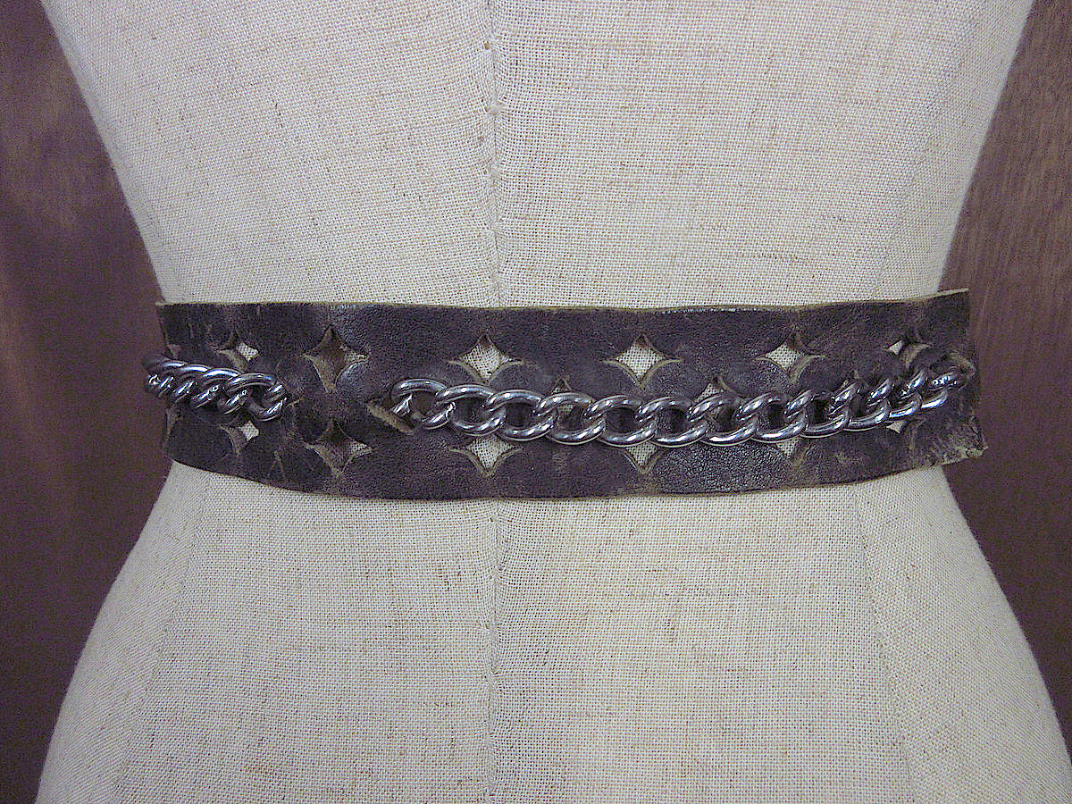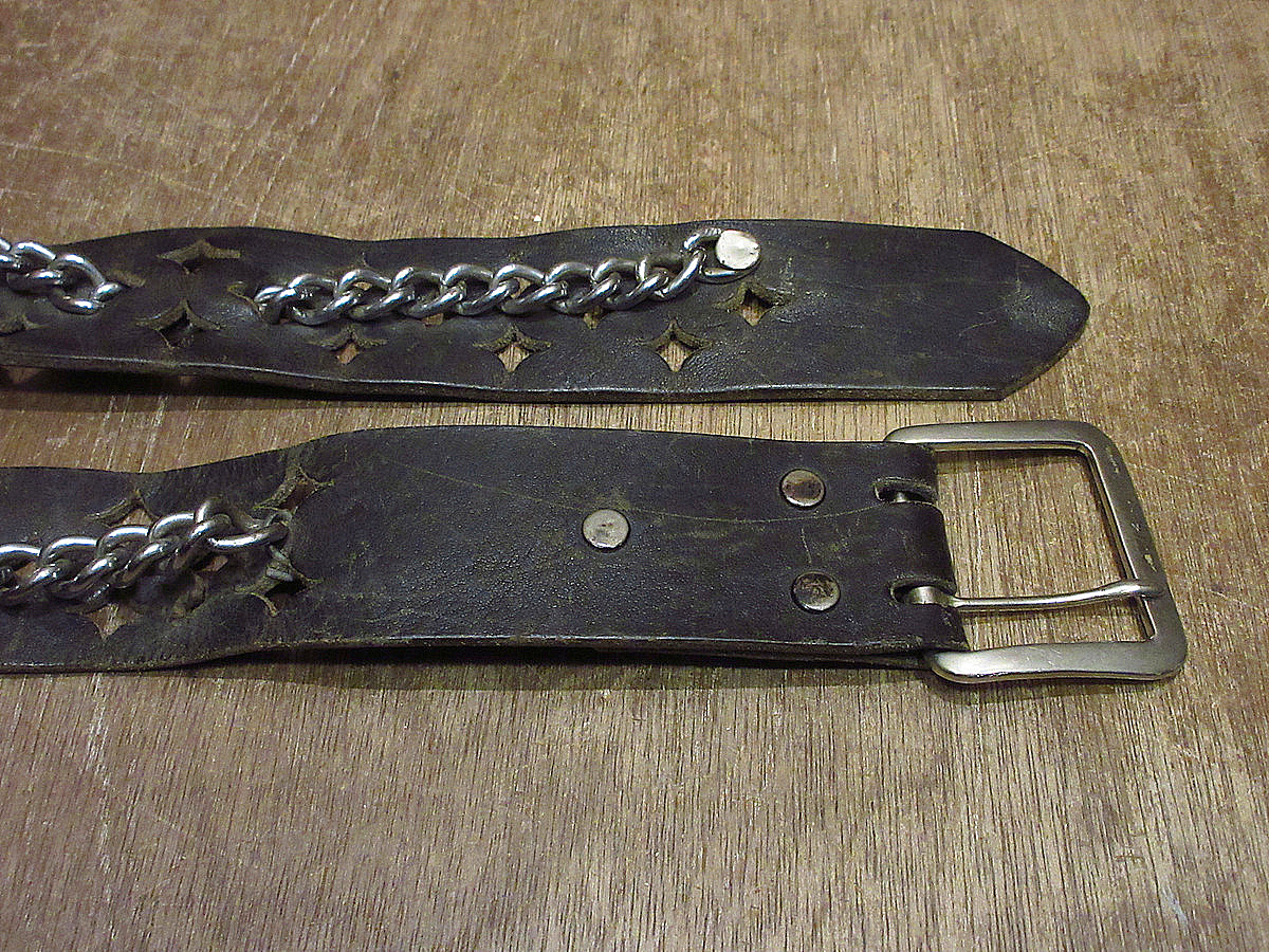 ビンテージ-70’s●チェーン付きレザーベルト黒●240817j8-blt古着1970s革アクセサリー