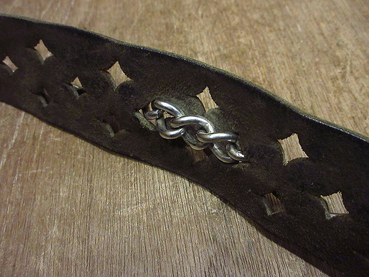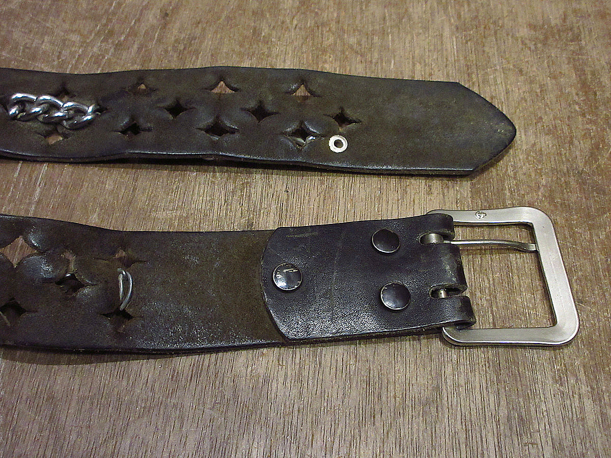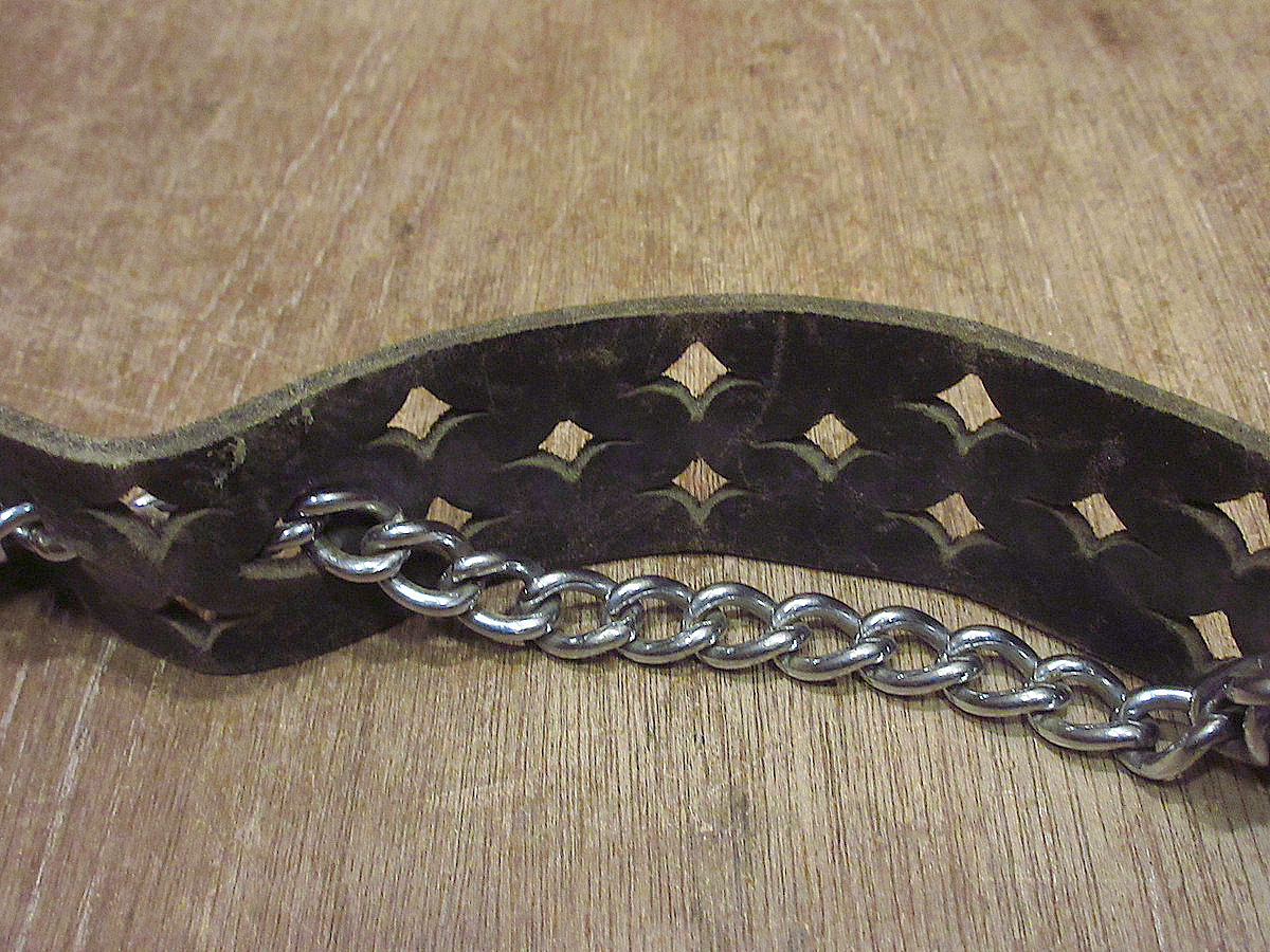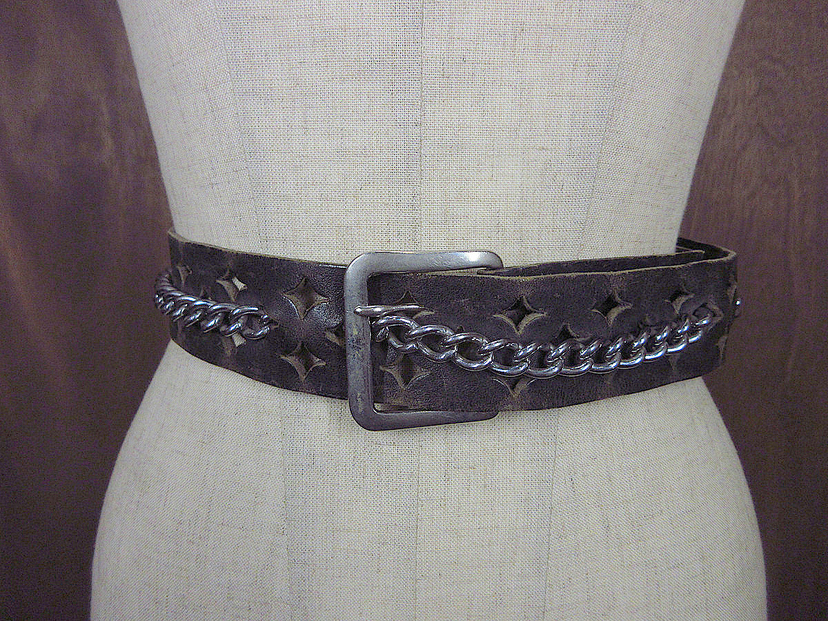 ビンテージ-70’s●チェーン付きレザーベルト黒●240817j8-blt古着1970s革アクセサリー