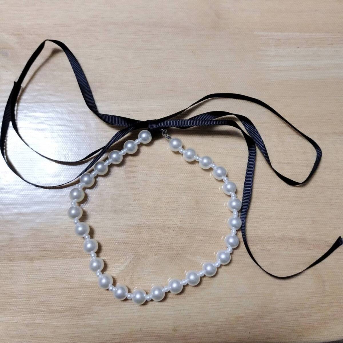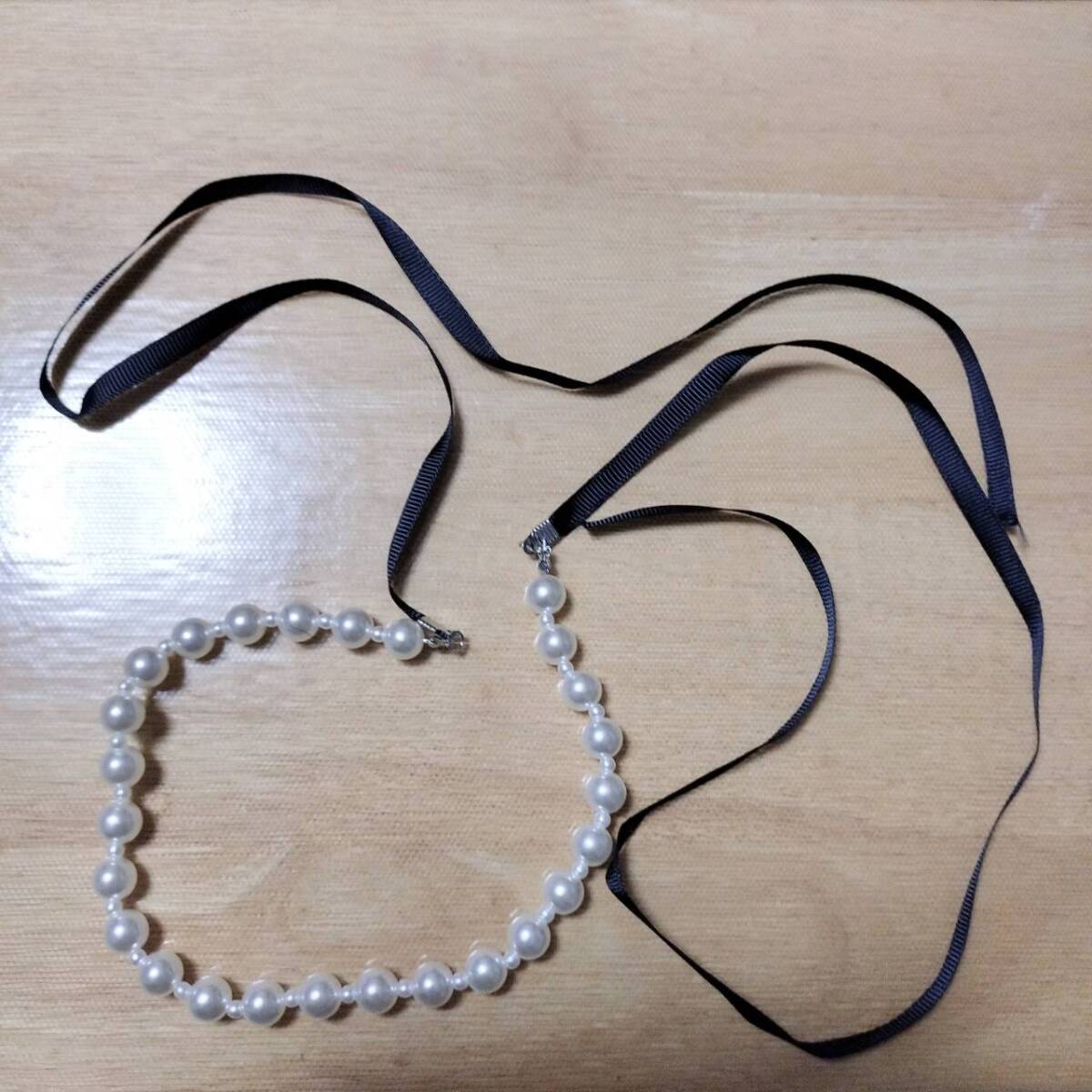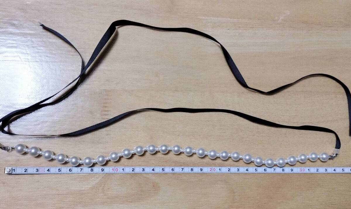 新品未使用 ネックレス ブラック リボン パール 真珠 黒 紐 レディース 韓国 シンプル ベルベット チョーカー シルバー オシャレ #D131-2